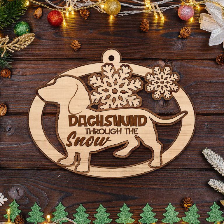 Let’s Shop Dachshund Through Snow Custom Shaped Wooden Christmas Ornament!