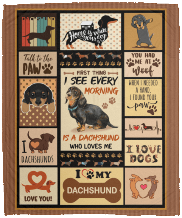 Shop First Thing I See Every Morning Is a Dachshund Who Loves Me Fleece Blanket – Sherpa Blanket – Woven Blanket.