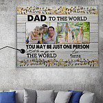 Are you spending too much time to find creative merchandise for you or suitable & special gifts for your mommy, your daddy, your son, your daughter, your children, your friends or someone you love? The struggle is over because we have various Dad Wall Art, Inspirational Wall Art for Dad, Dad Gifts from Daughter Wall Art, Love You Dad Wall Art, Happy Birthday Dad Wall Art, to My Dad Canvas, Dad Canvas Art, Best Dad Canvas, Dad Canvas for Fathers Day, Fathers Day Wall Art which will make perfect presents for your beloveds. In order to make your present stand out, we have created lots of unique and awesome customized photo gifts & personalized designs.