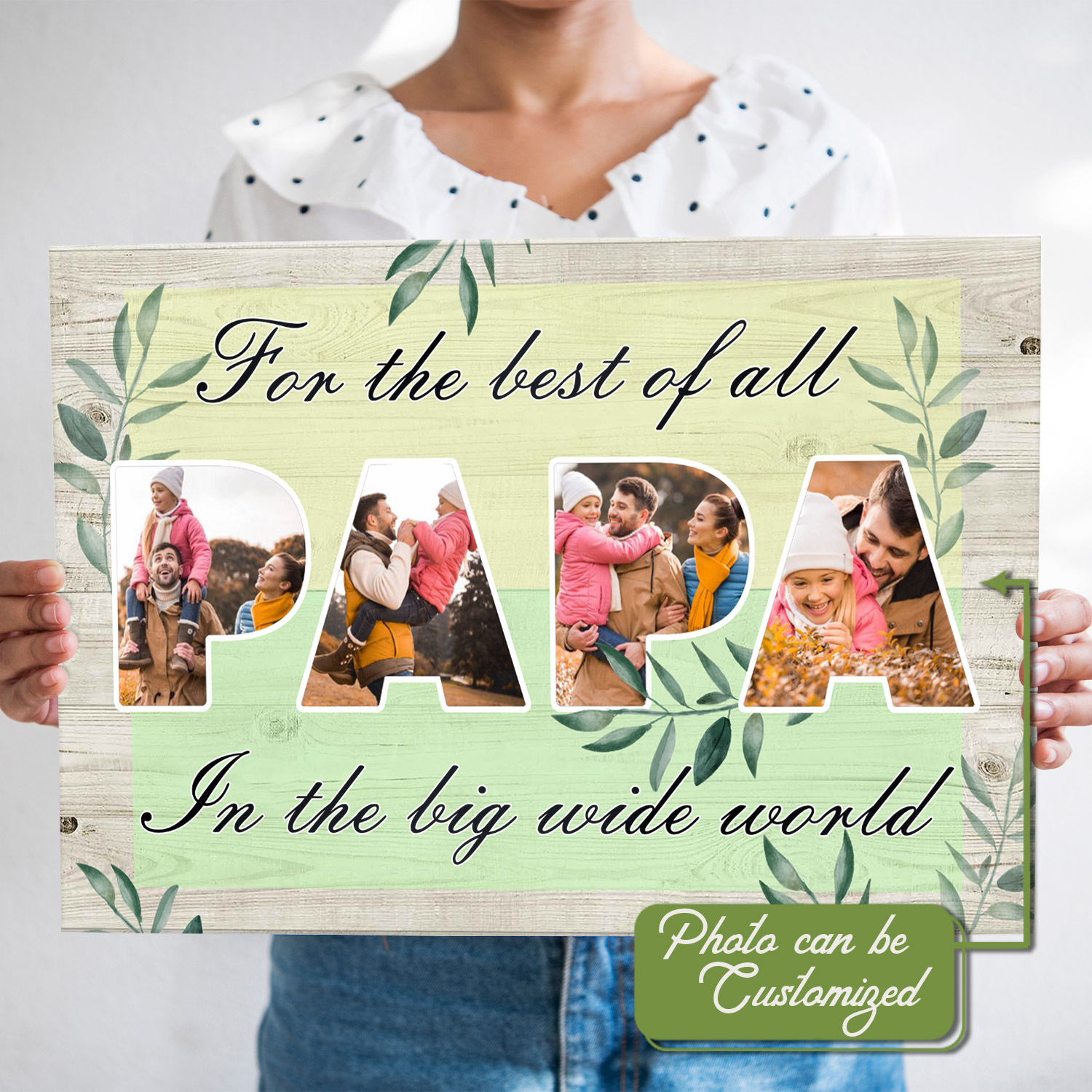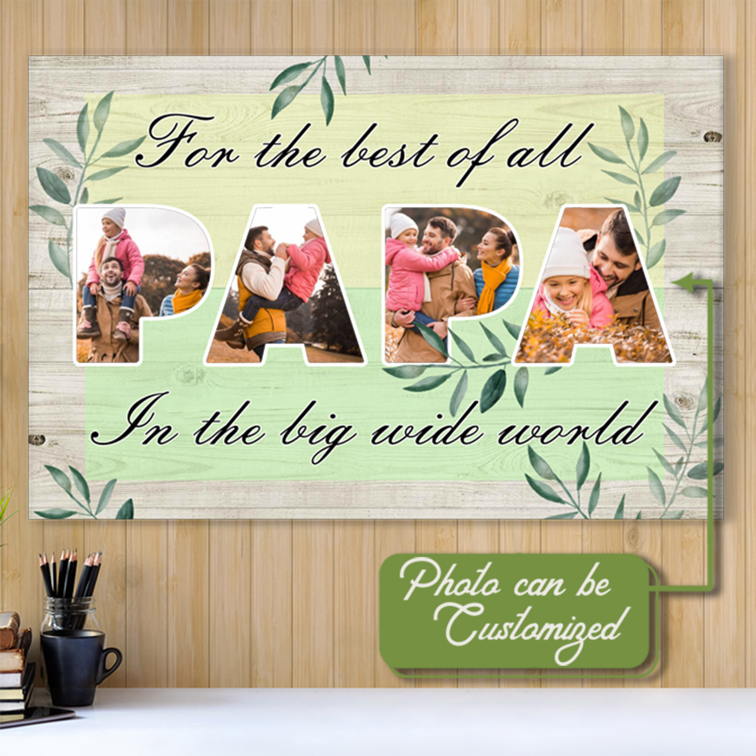 Let’s Shop Personalized Photo Papa For The Best Of All In The Big Wide World Framed Canvas – Unframed Poster!