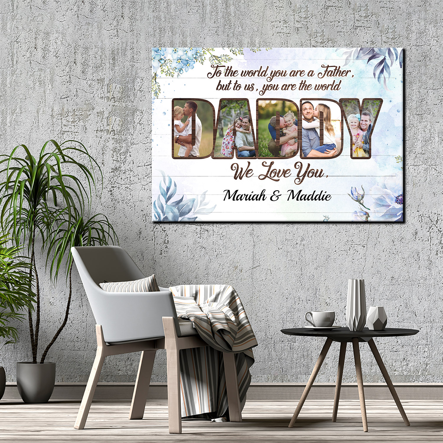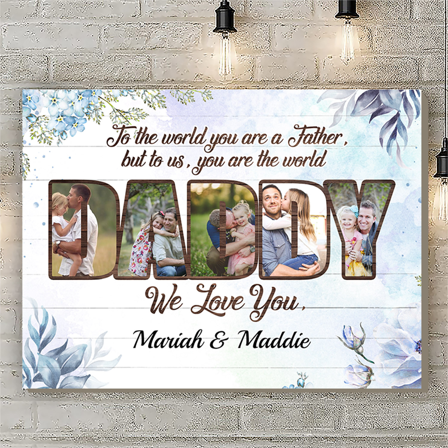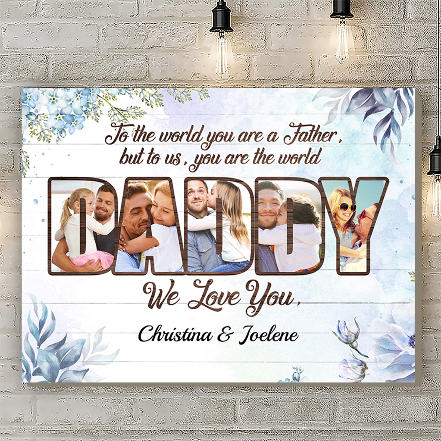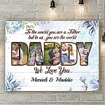 Let’s Shop Personalized Photo To Dad To The World You Are A Father But To Us You Are The World Framed Canvas – Unframed Poster!