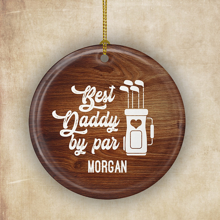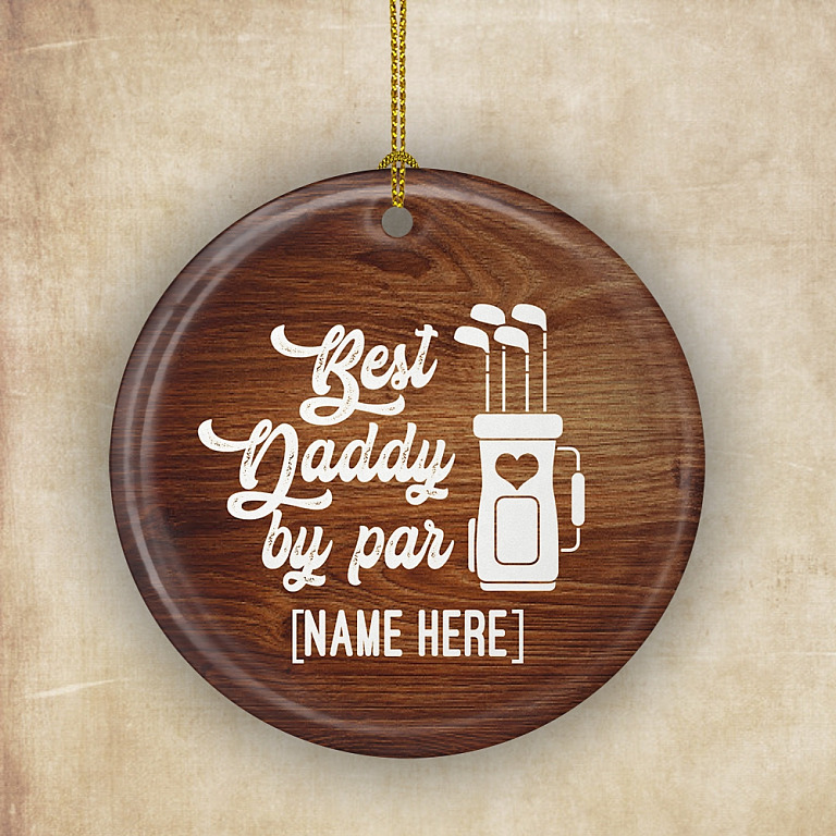 Shop Personalized Best Daddy By Par Ornament Keepsake – Circle Porcelain Ceramic Ornament – Dad Golf Gifts.