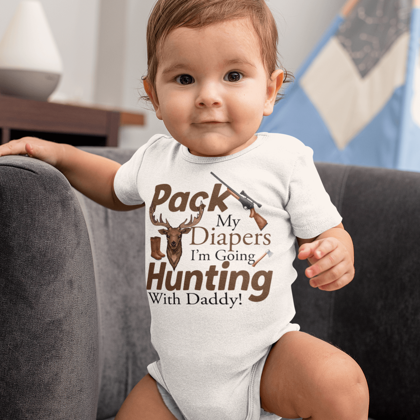 Let’s Shop Pack My Diapers I’m Going Hunting With Daddy Baby Onesie – Baby Infant Bodysuit!