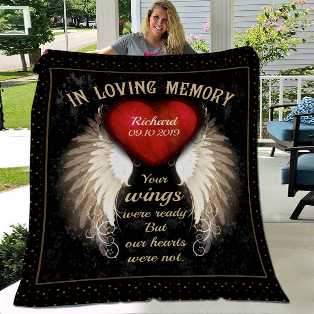 Let’s Shop Personalized In Loving Memory Your Wings Were Ready But Our Hearts Were Not Fleece Blanket – Premium Sherpa Blanket!