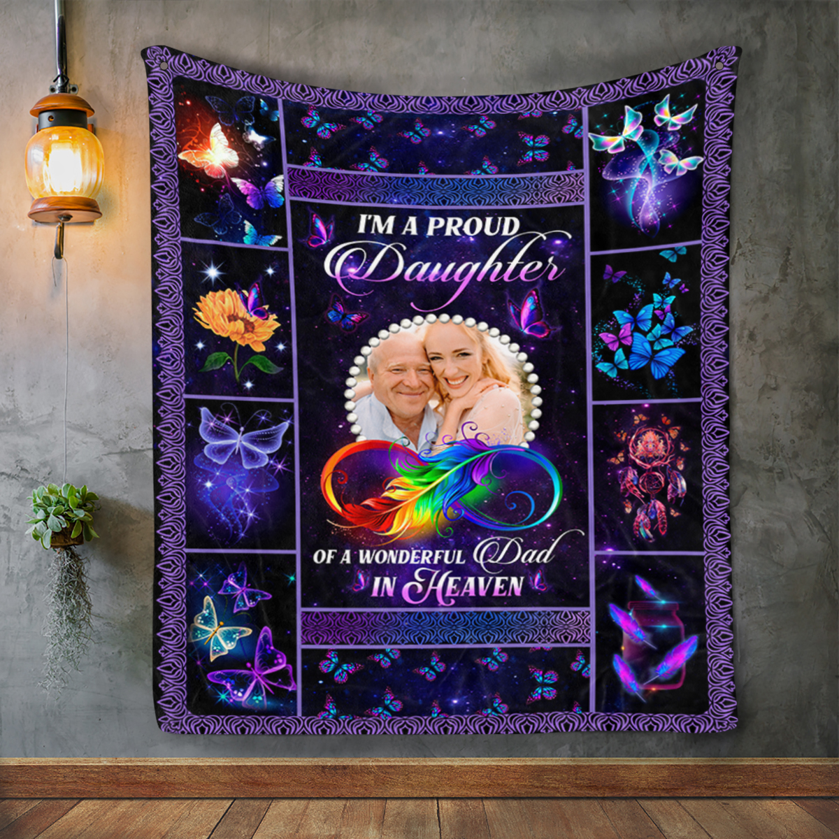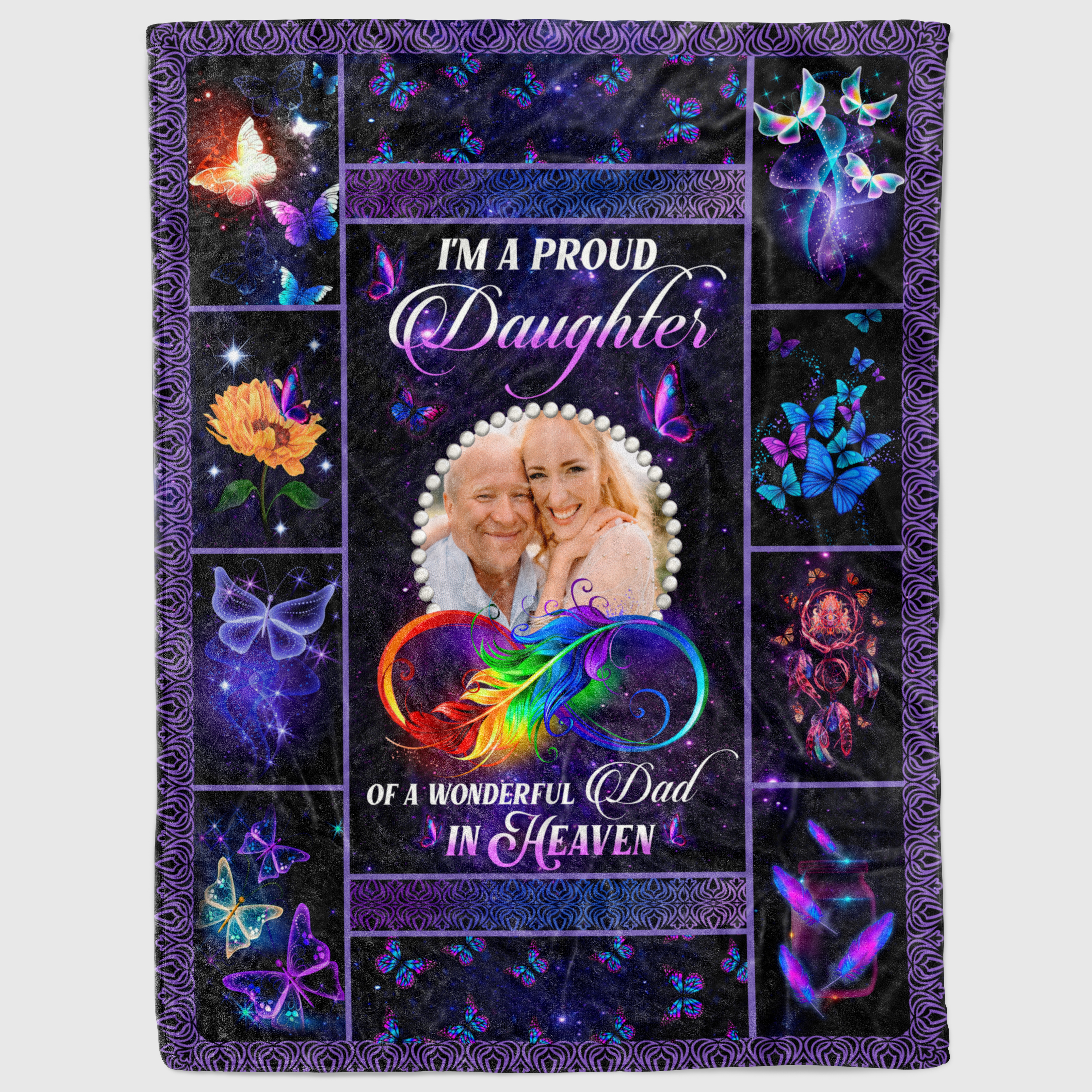 Let’s Shop Personalized Photo I’m A Proud Daughter Of A Wonderful Dad In Heaven Fleece Blanket – Sherpa Blanket!