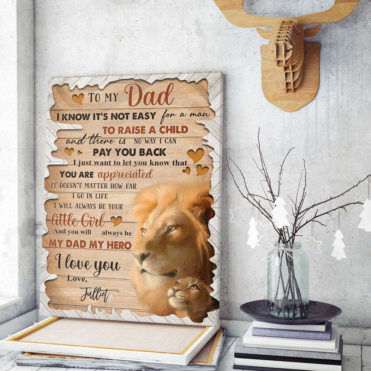 Let’s Shop Personalized Daughter to My Dad I Know It’s Not Easy for a Man to Raise a Child Wrapped Framed Canvas – Unframed Poster!