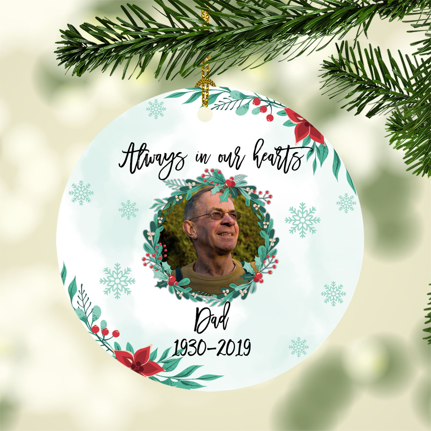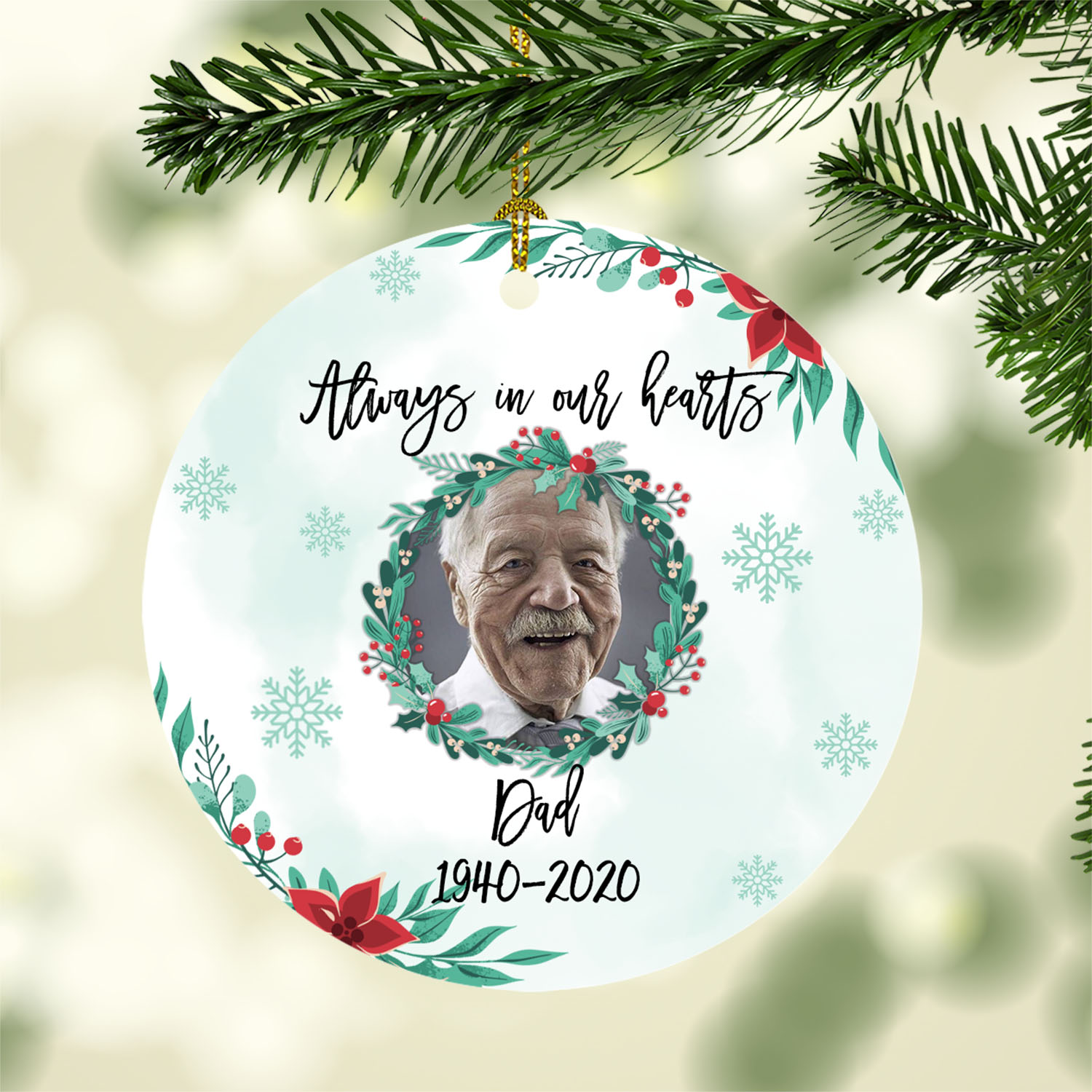 Let’s Shop Personalized Photo Always In Our Hearts Memorial Circle Christmas Tree Ornament Keepsake!