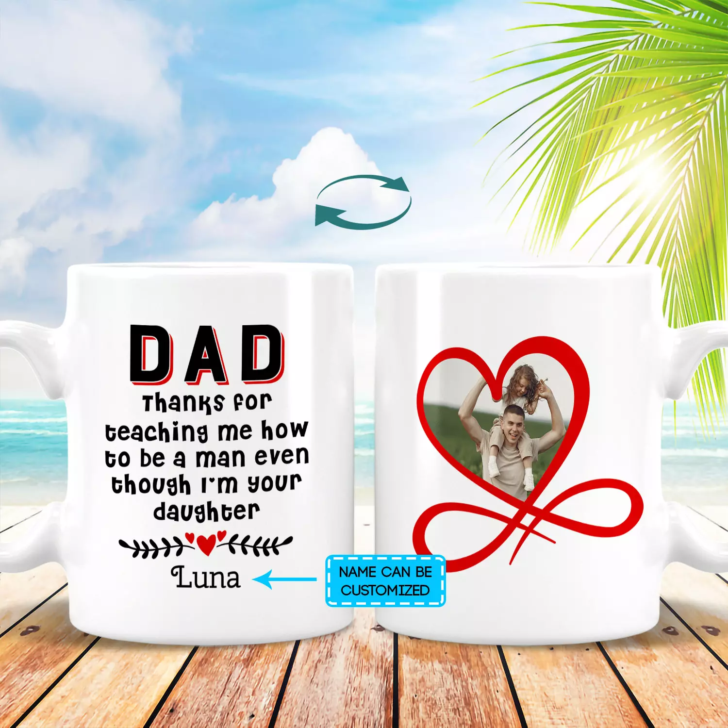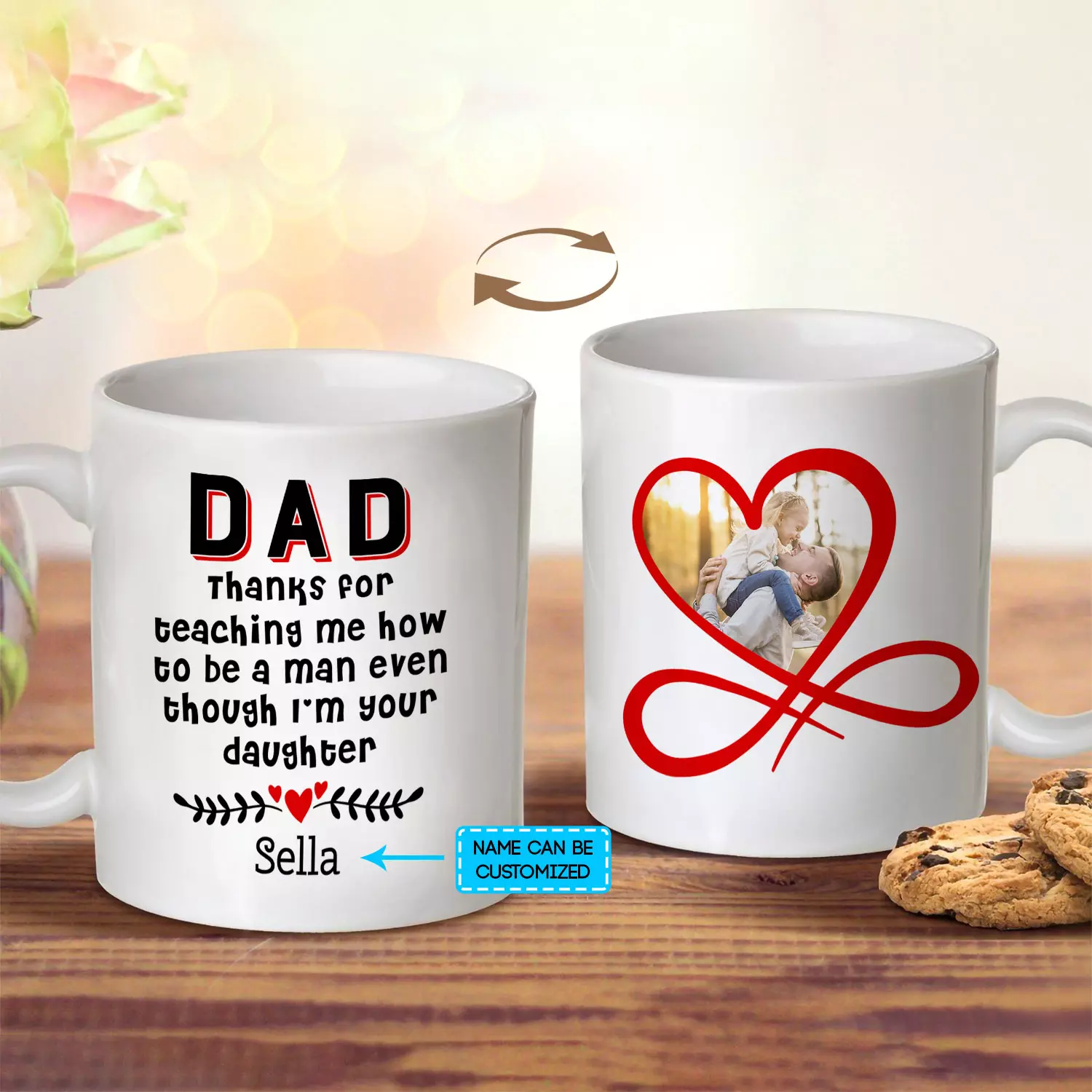 Let’s Shop Custom Photo Dad Thanks For Teaching Me How To Be A Man Even Though I’m Your Daughter 2 Sides Printed Coffee Mug!