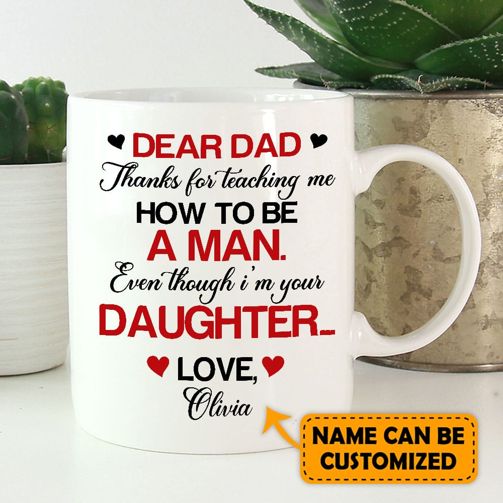 Let’s Shop Personalized Dear Dad Thanks For Teaching Me How To Be A Man Even Though I’m Your Daughter Coffee Mug!