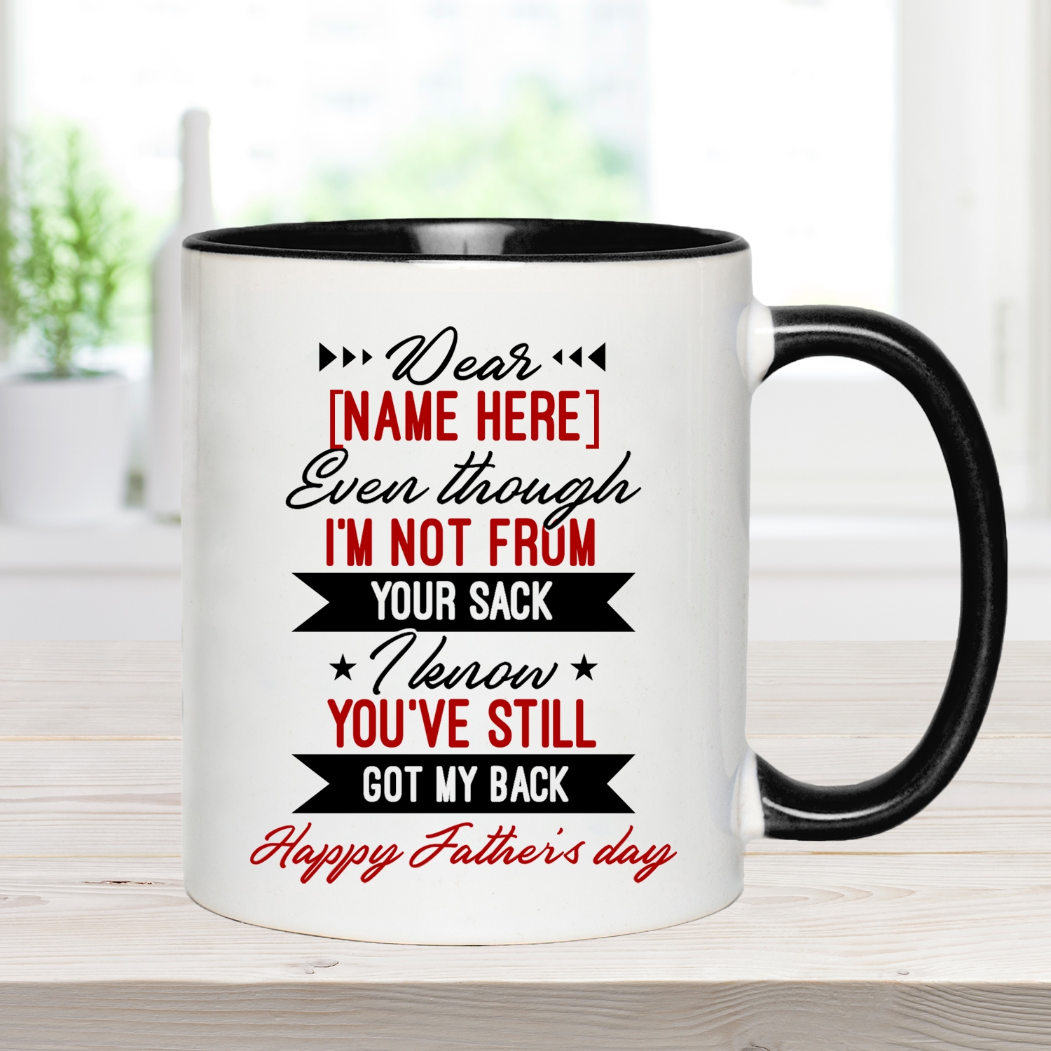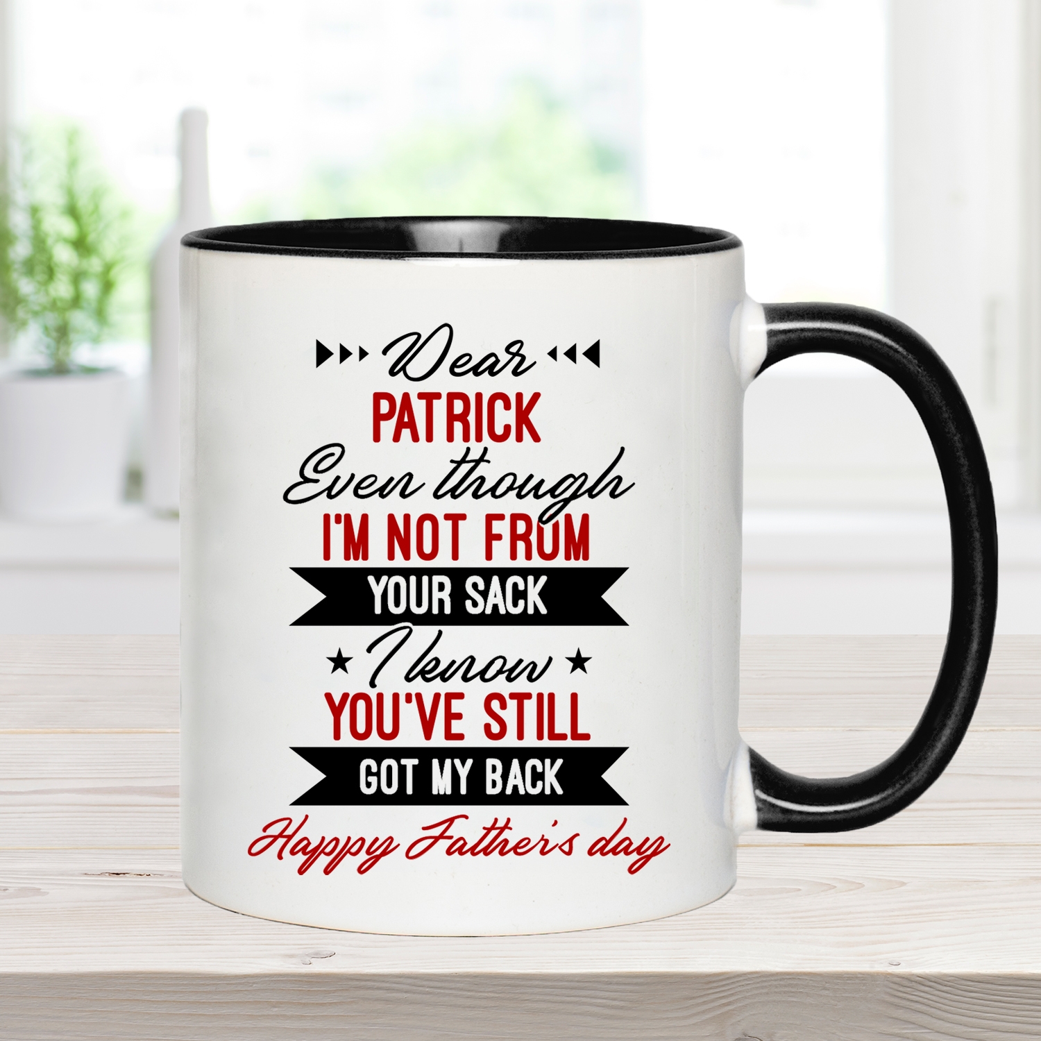 Shop Personalized Dear Dad Even Though I’m Not From Your Sack I Know You’ve Still Got My Back Accent Mug.