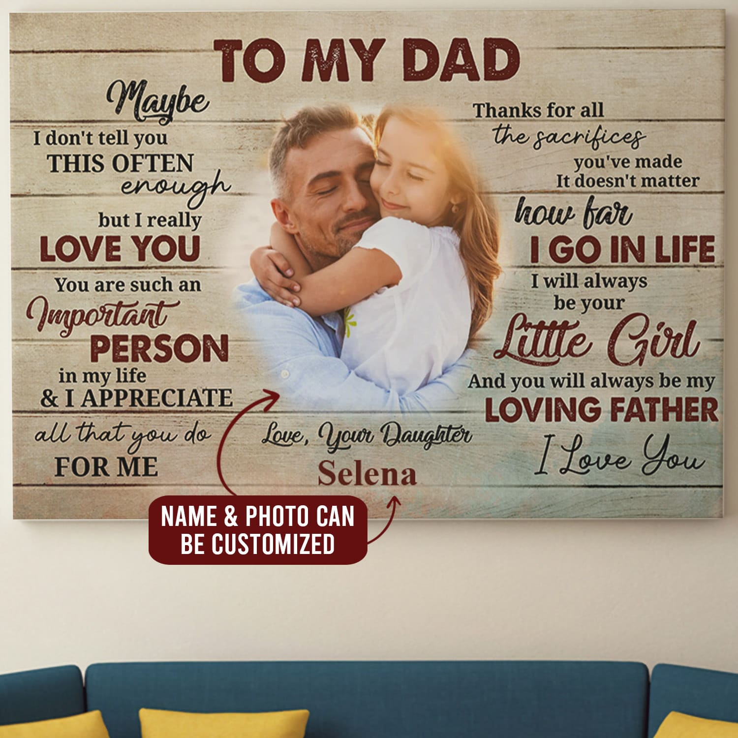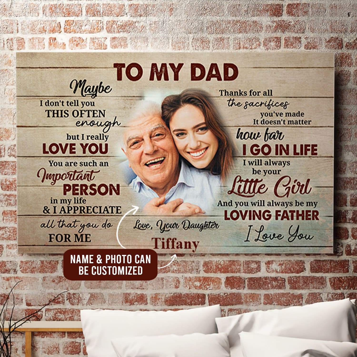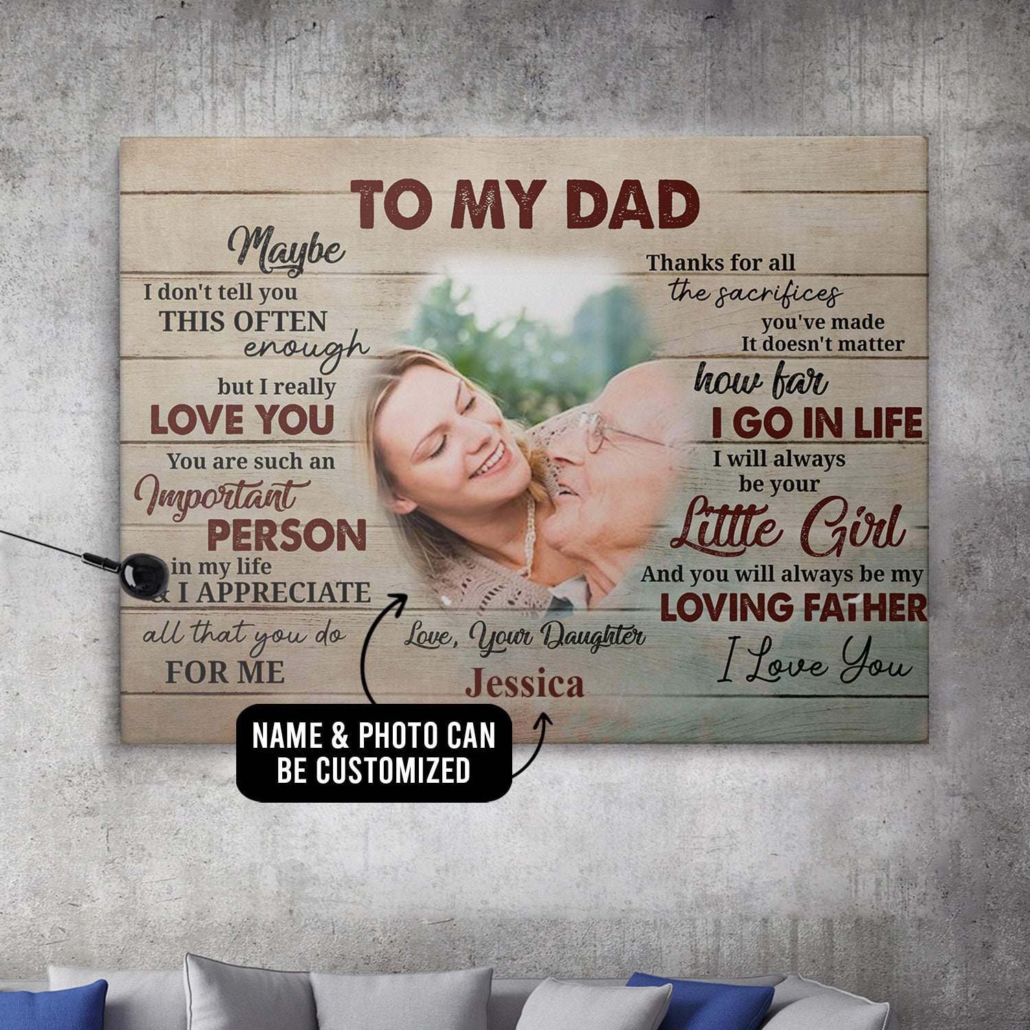 Are you spending too much time to find creative merchandise for you or suitable & special gifts for your mommy, your daddy, your son, your daughter, your children, your friends or someone you love? The struggle is over because we have various Personalized Canvas for Dad, Personalized Dad Canvas, Personalized Gifts for Dad Canvas, Personalized Wall Art for Dad, Personalized Daughter and Dad Wall Art, Fathers Day Gifts for Dad Photo Canvas, Photo Canvas for Dad, Dad Custom Photo Canvas, Dad Photo Canvas which will make perfect presents for your beloveds. In order to make your present stand out, we have created lots of unique and awesome customized photo gifts & personalized designs.