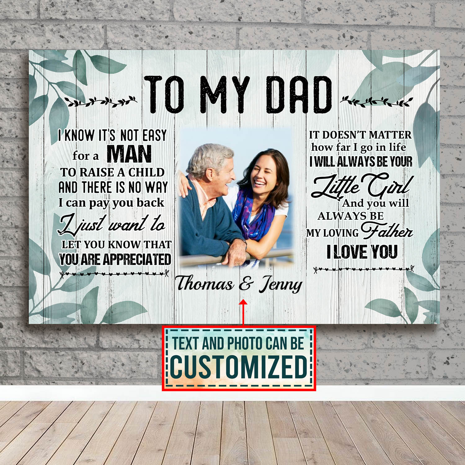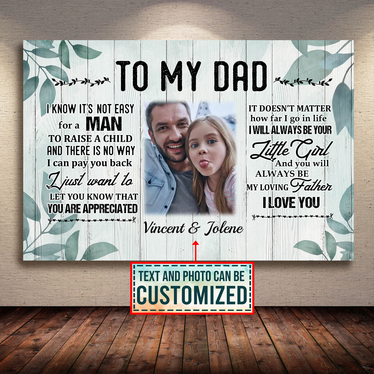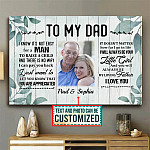 Are you spending too much time to find creative merchandise for you or suitable & special gifts for your mommy, your daddy, your son, your daughter, your children, your friends or someone you love? The struggle is over because we have various Personalized Canvas for Dad, Personalized Dad Canvas, Personalized Gifts for Dad Canvas, Personalized Wall Art for Dad, Personalized Daughter and Dad Wall Art, Fathers Day Gifts for Dad Photo Canvas, Photo Canvas for Dad, Dad Custom Photo Canvas, Dad Photo Canvas which will make perfect presents for your beloveds. In order to make your present stand out, we have created lots of unique and awesome customized photo gifts & personalized designs.