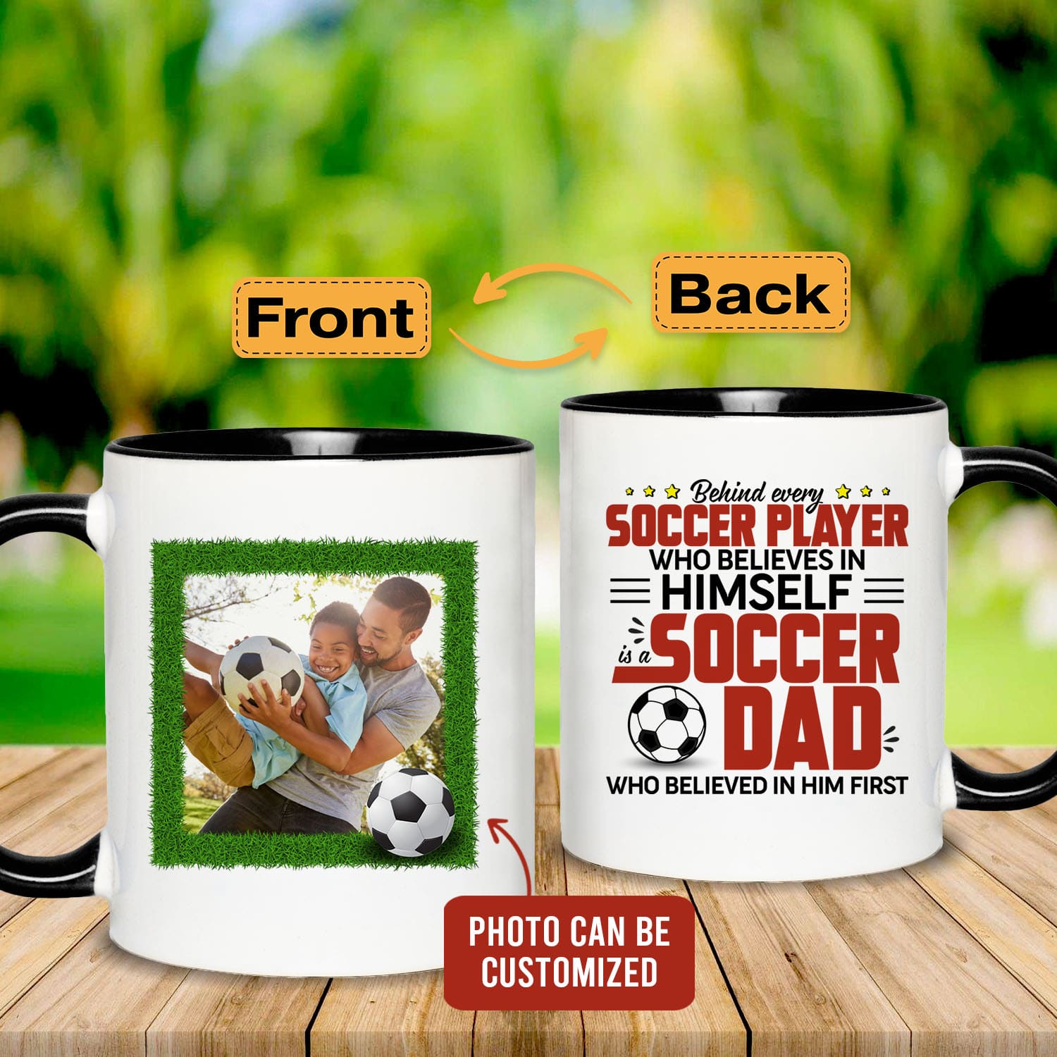 Let’s Shop Custom Photo Behind Every Soccer Player Who Believes In Himself Is A Soccer Dad 2 Side Printed Accent Coffee Mug!