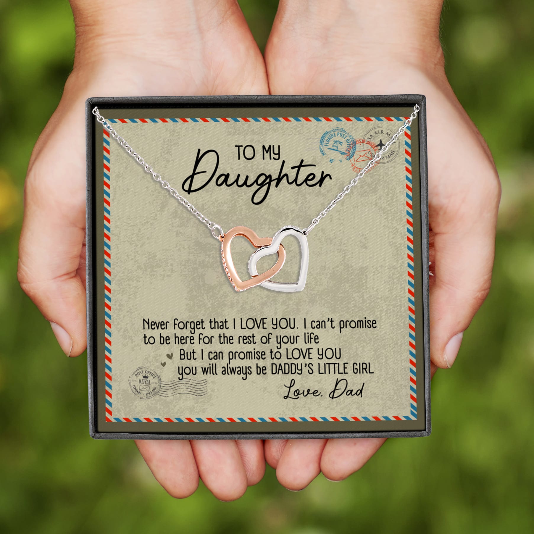 Let’s Shop To My Daughter Mailing Necklace – Letter Never Forget That I love You Interlocking Hearts Pendant Necklace!