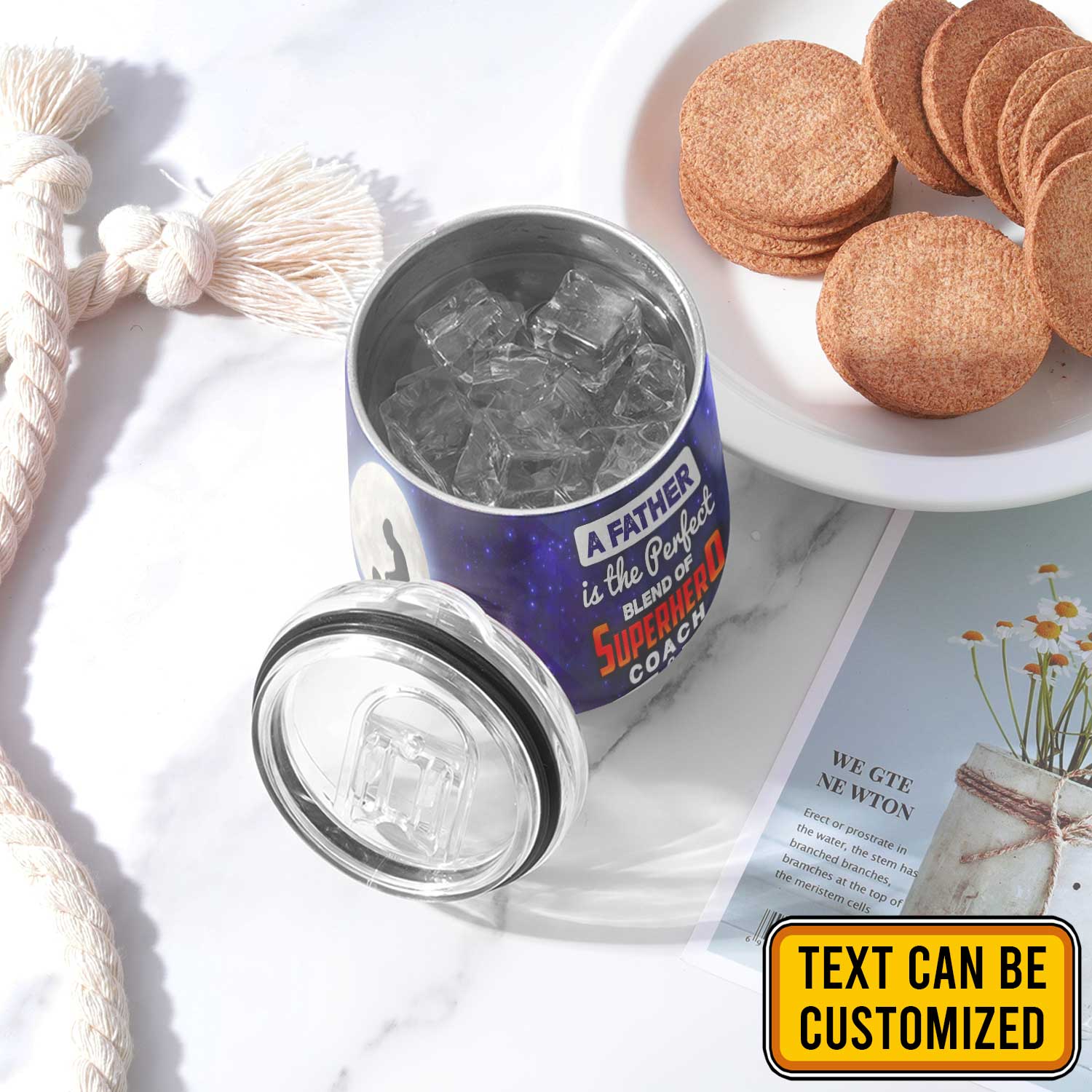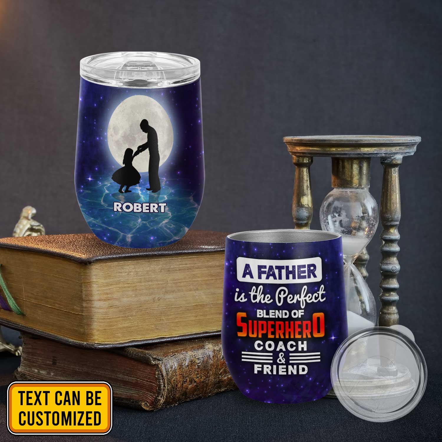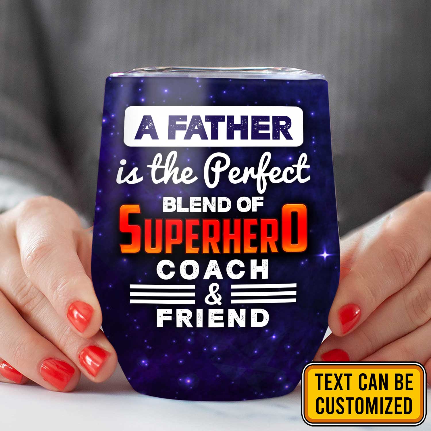 Let’s Shop Personalized A Father Is The Perfect Blend Of Superhero Coach And Friend Vacuum Insulated Cup – Wine Tumbler with Lid!