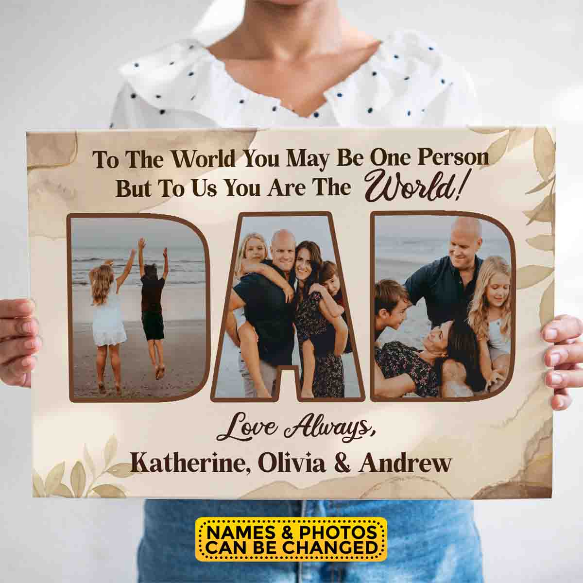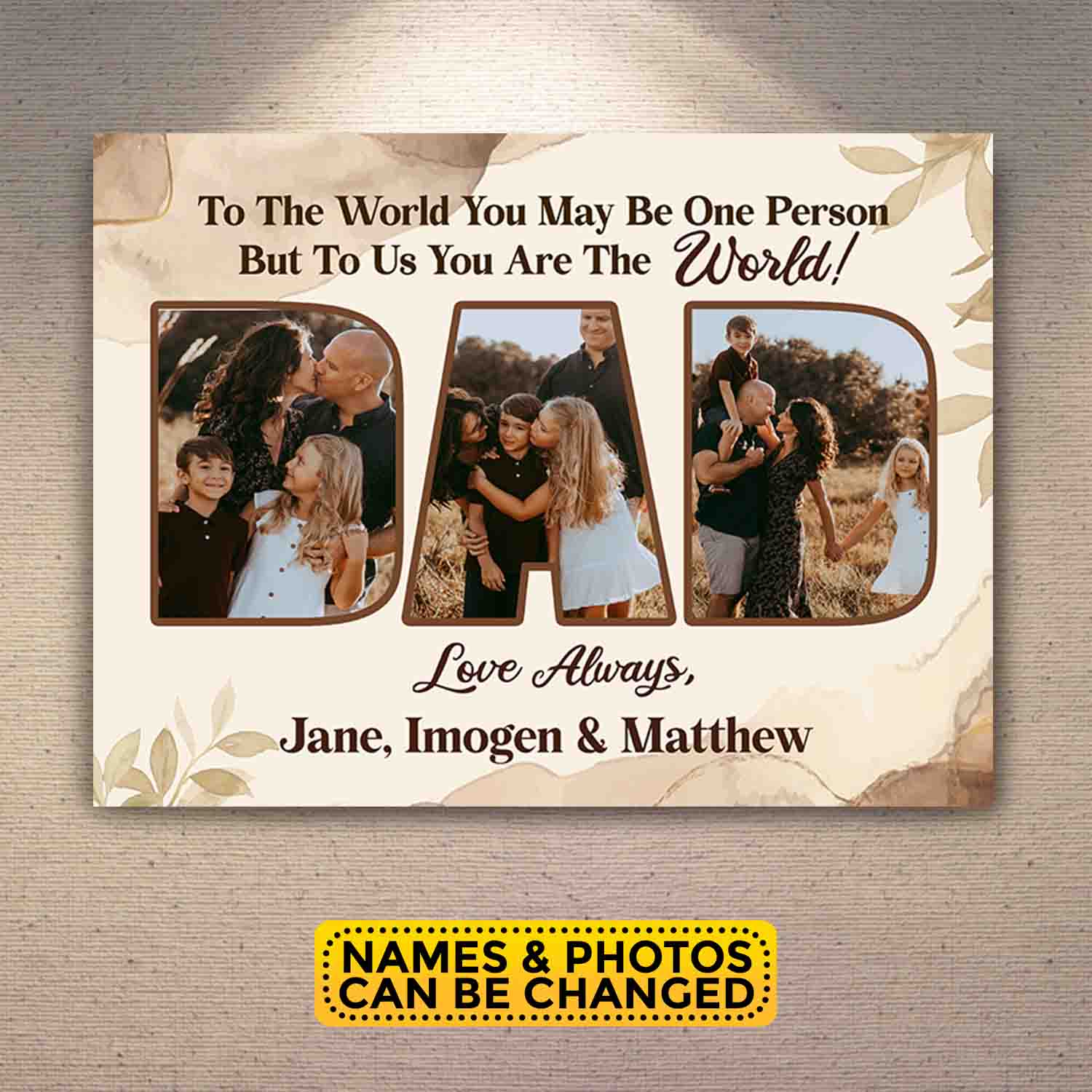Let’s Shop Dad You Are The World Personalized Photo Canvas Poster – Dad To The World Wall Art Decor – Fathers Day Gifts!