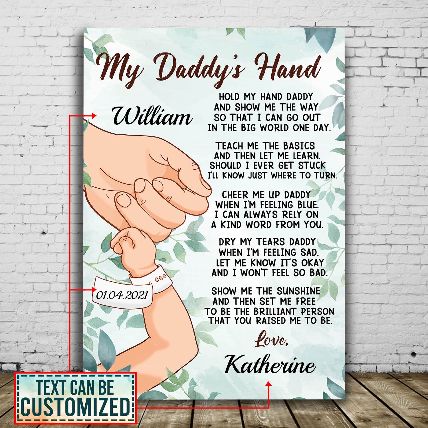 Let’s Shop Personalized My Daddy’s Hand Hold My Hand Daddy and Show Me Wrapped Framed Canvas Prints – Unframed Poster!