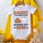 Let’s Shop Daddy Thanks for Wipping my Bump Baby Bodysuit – 1st Fathers Day Baby Onesie!