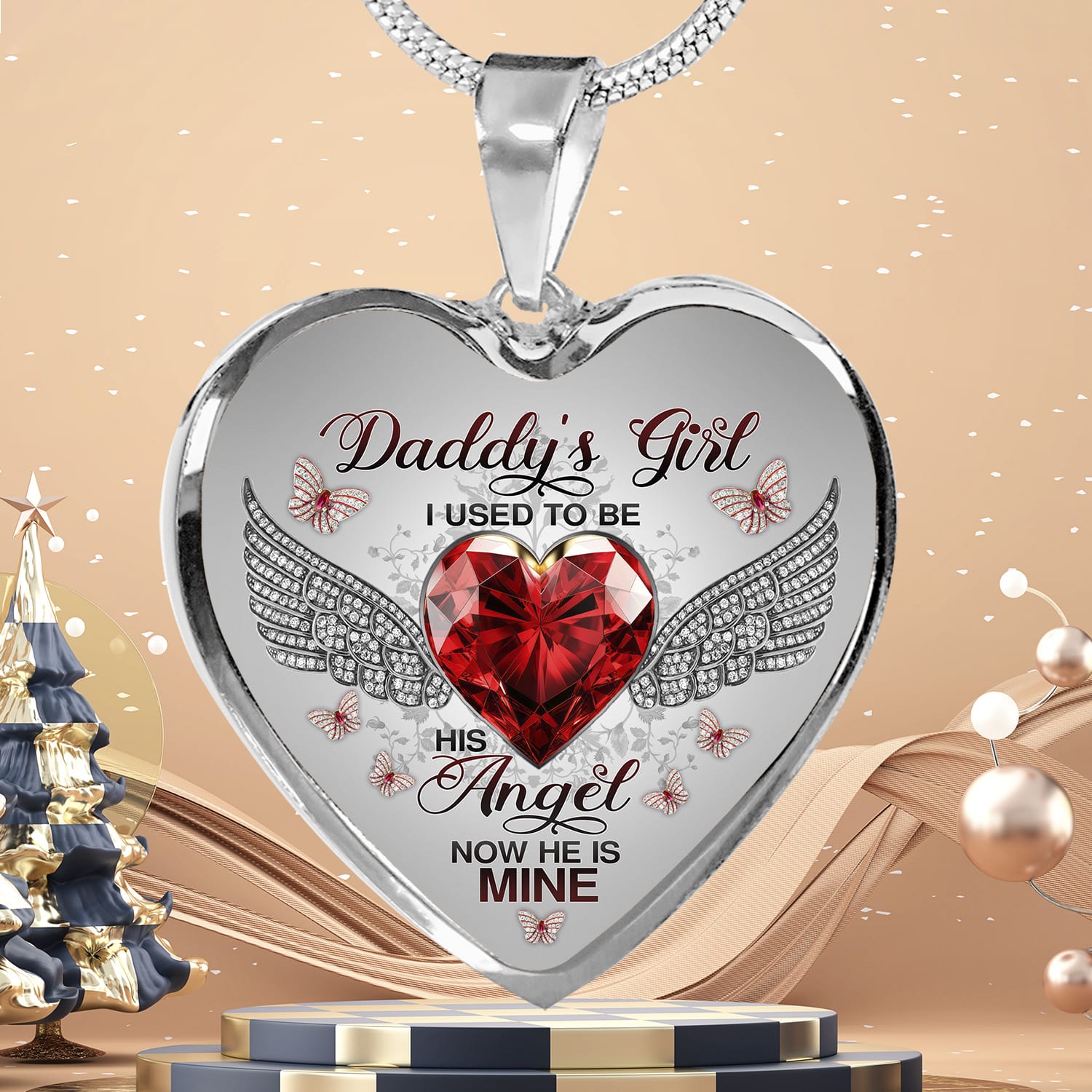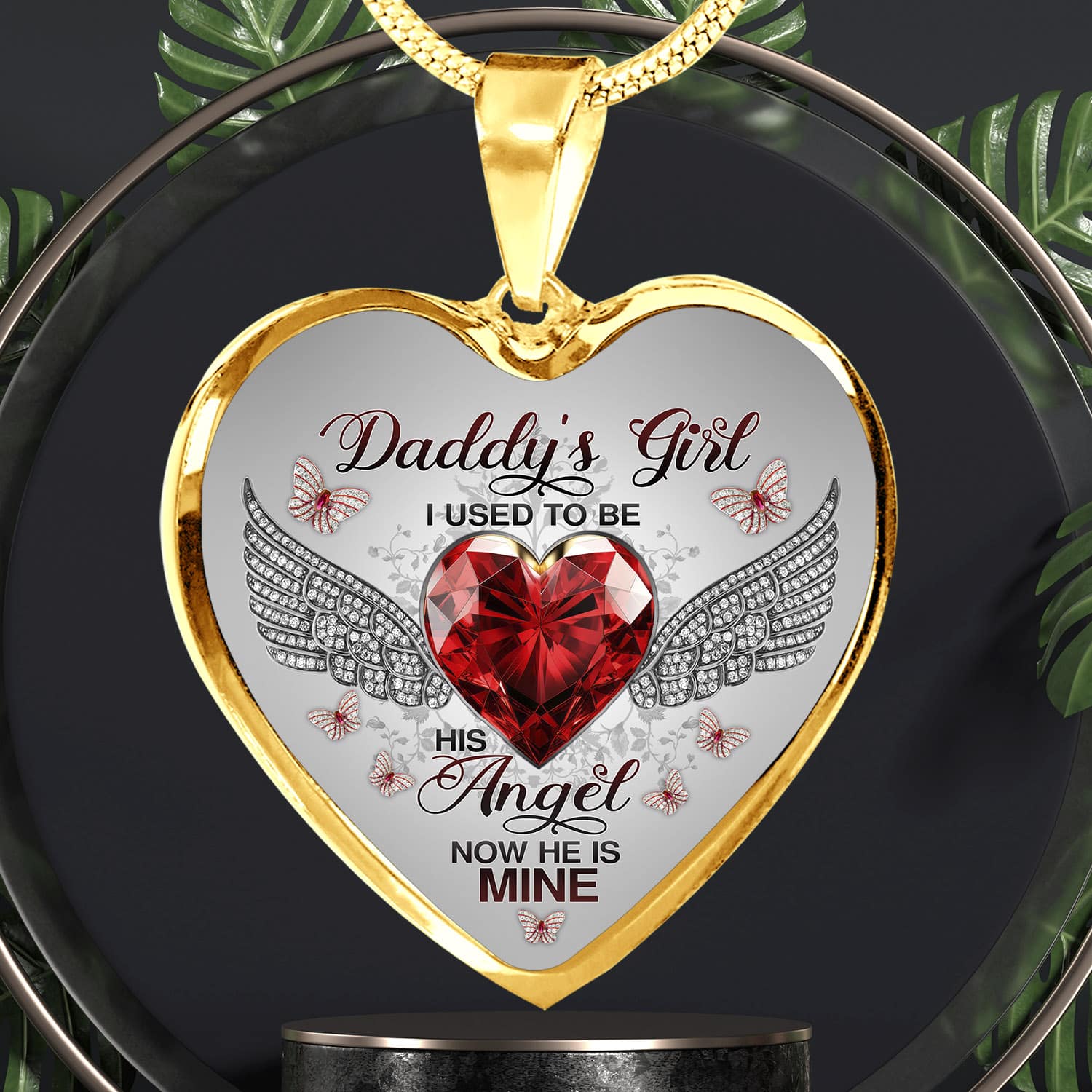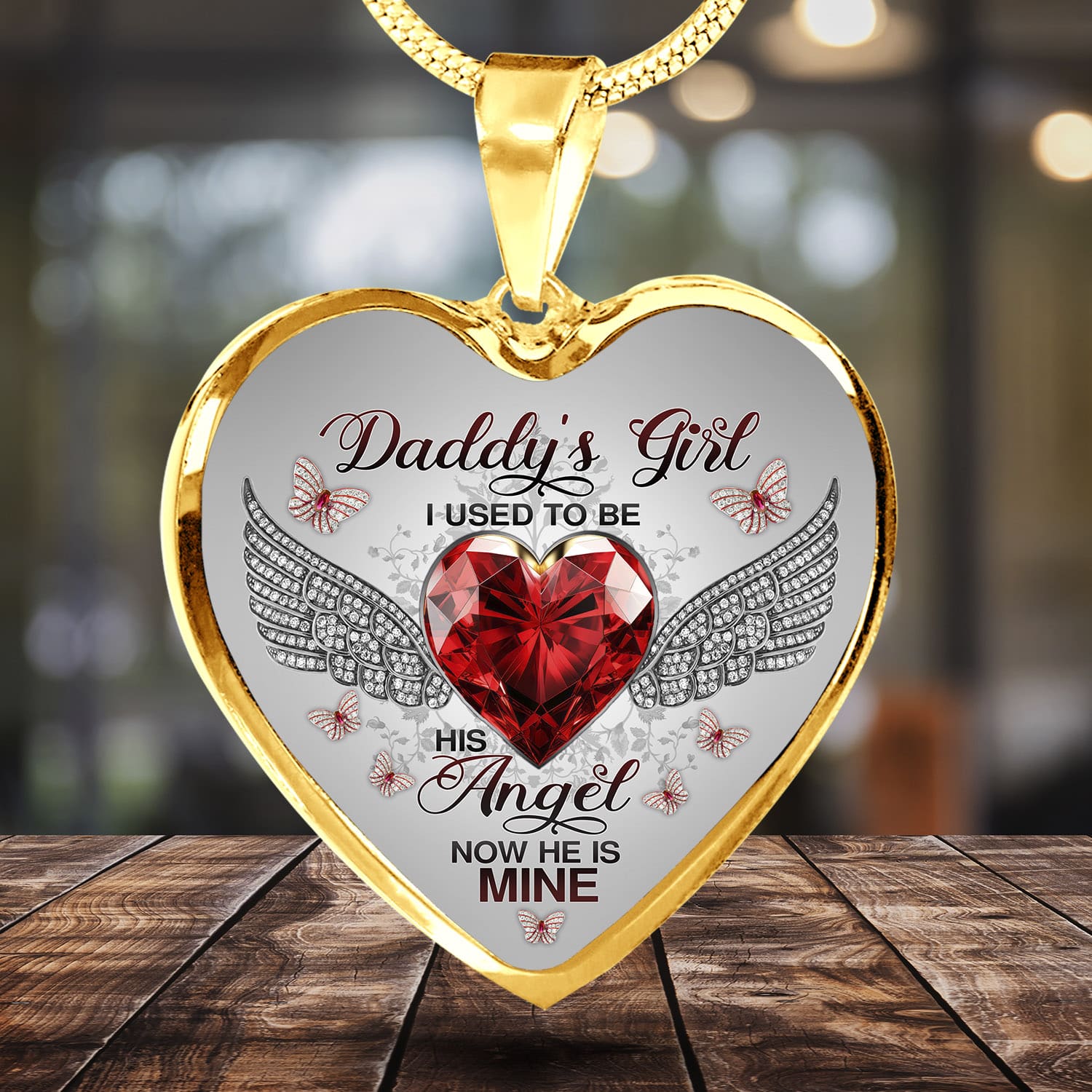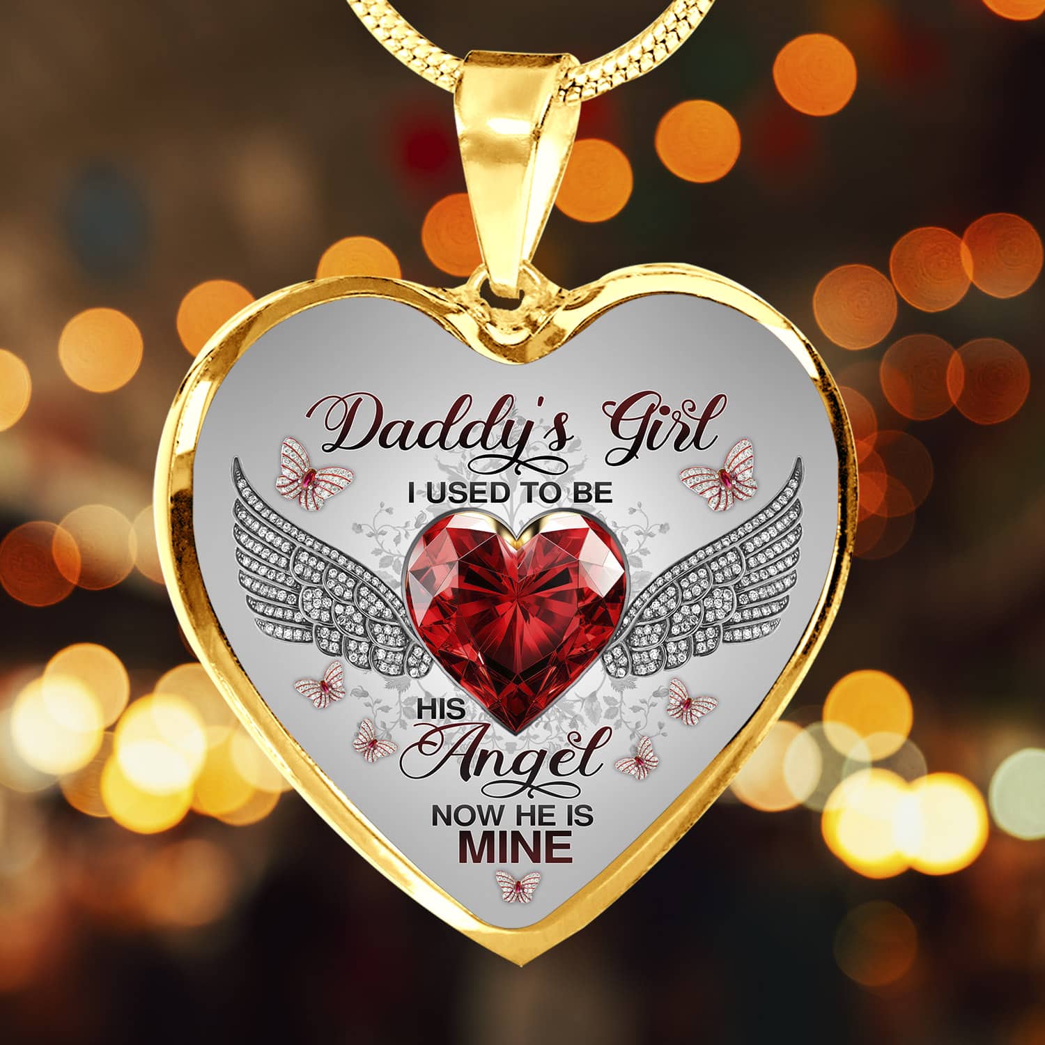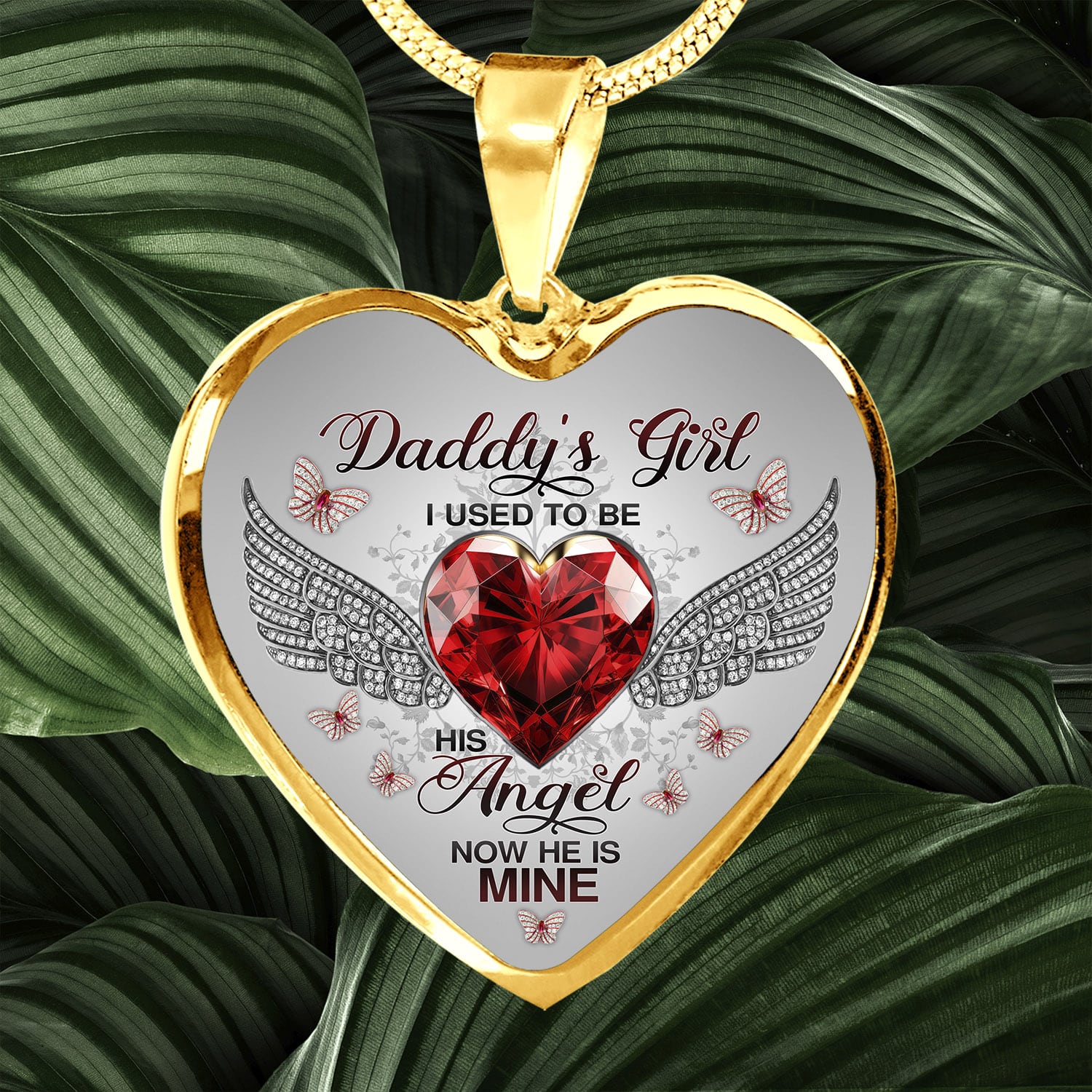 Let’s Shop Daddy’s Girl I Used To Be His Angel Now He Is Mine Butterfly Luxury Heart Pendant Necklace – Dad Memorial Jewelry Gifts!
