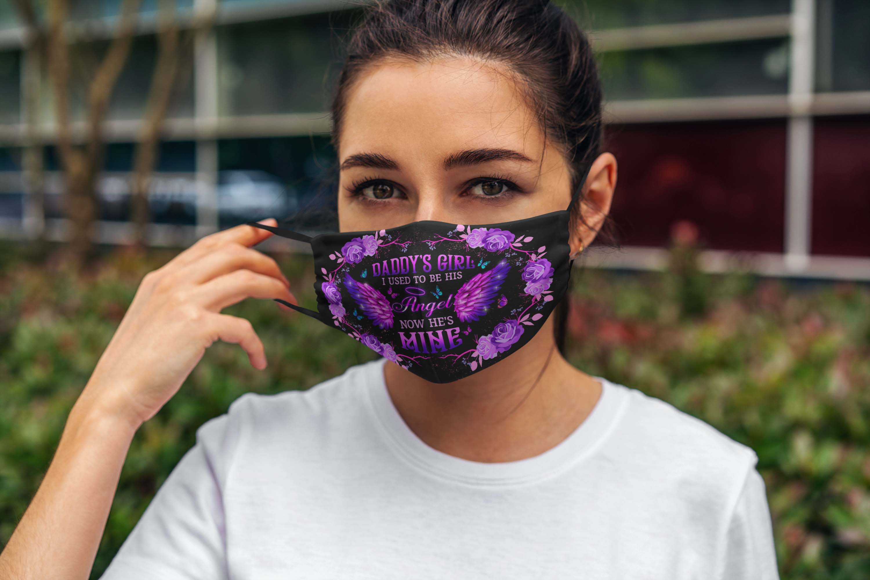 Shop Daddy’s Girl I Used To Be His Angel Now He’s Mine Washable Reusable Custom – Printed Cloth Face Mask Cover.