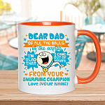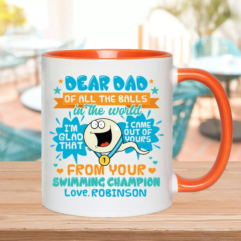 Shop Personalized Dear Dad Of All The Balls In The World I’m Glad That I Came Out Of Yours Accent Coffee Mug.