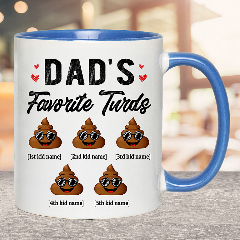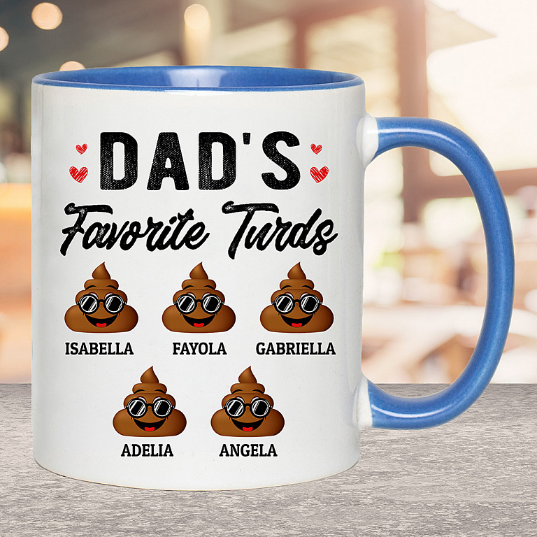 Personalized Dad’s Favorite Five Turds Funny Personalized Family Accent Mug