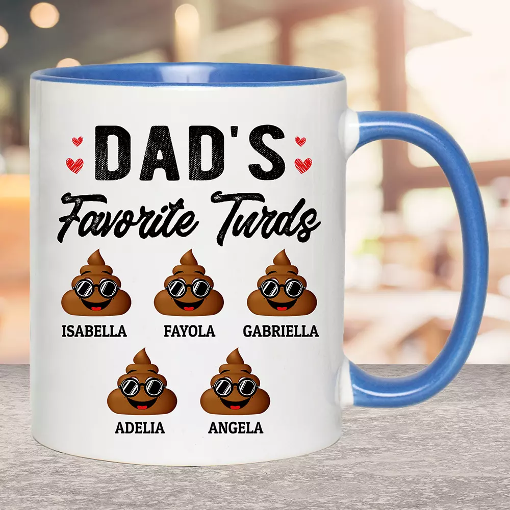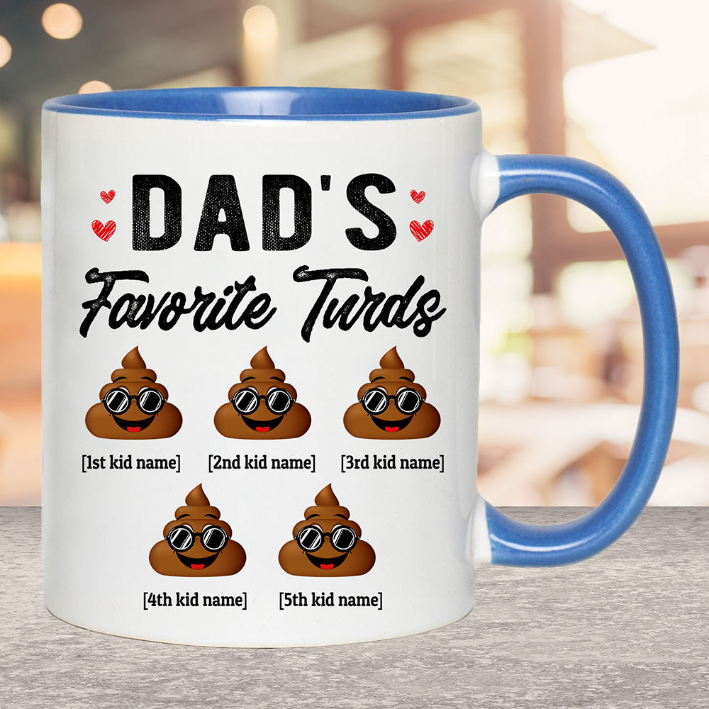 Shop Personalized Dad’s Favorite Five Turds Funny Personalized Family Accent Mug.