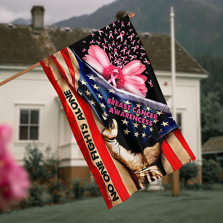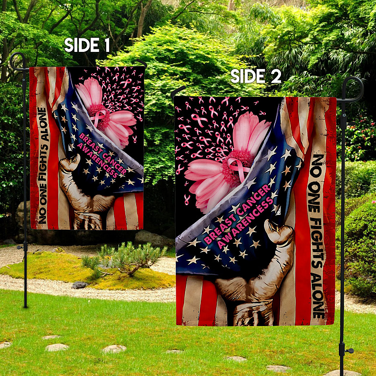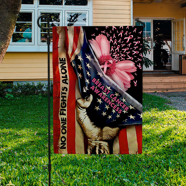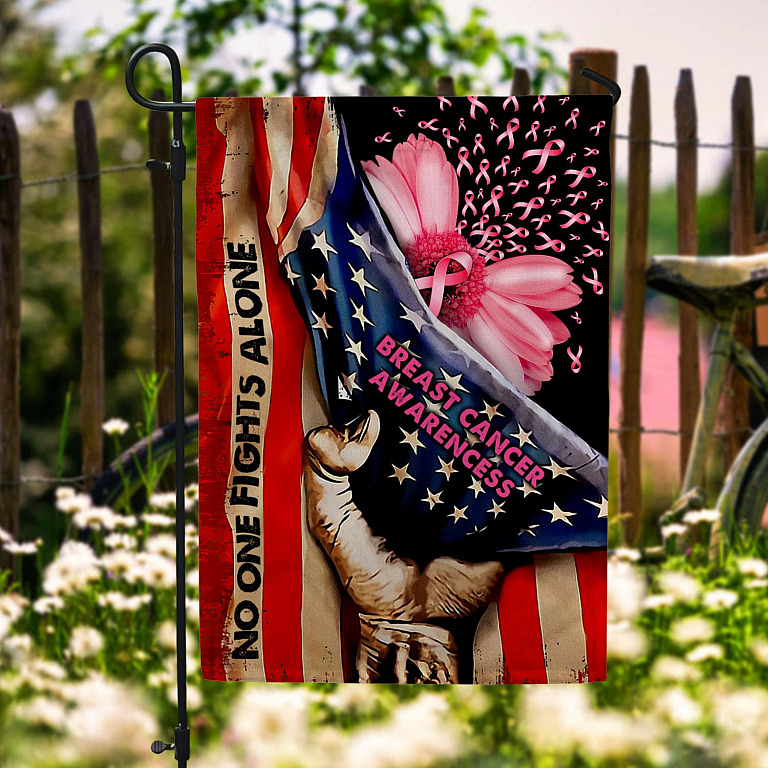 Let’s Shop Daisy Breast Cancer Awareness No One Fights Alone Garden Flag – Breast Cancer American Flag House Flag!