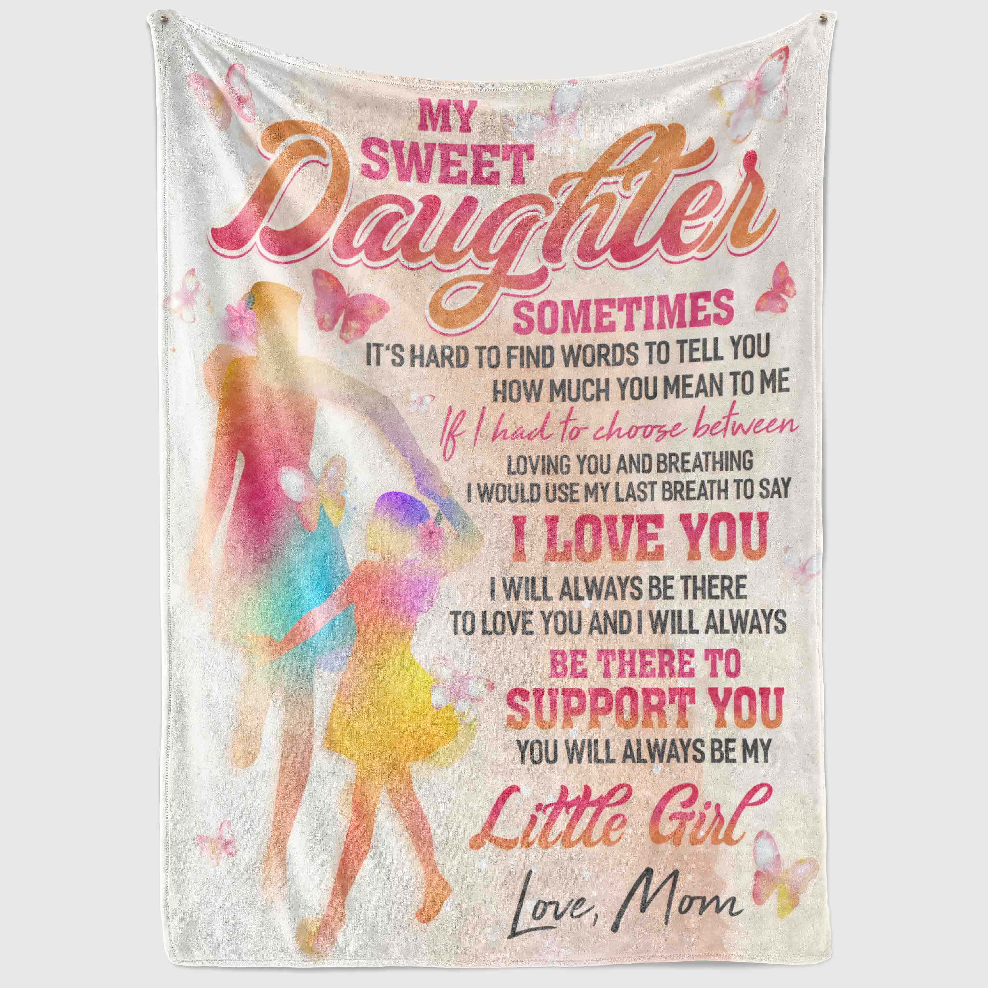 Shop My Sweet Daughter Sometimes It’s Hard To Find Words To Tell You Fleece Blanket – Premium Sherpa Blanket.