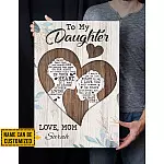 Are you spending too much time to find creative merchandise for you or suitable & special gifts for your mommy, your daddy, your son, your daughter, your children, your friends or someone you love? The struggle is over because we have various Daughter Canvas from Mom, to My Daughter from Mom Canvas, Daughter Poster from Mom, to My Daughter Poster from Mom, Wall Decor for Daughter from Mom, to My Daughter from Mom Wall Art, Daughter Wall Art from Mom, Daughter Wall Decor from Mom which will make perfect presents for your beloveds. In order to make your present stand out, we have created lots of unique and awesome customized photo gifts & personalized designs.