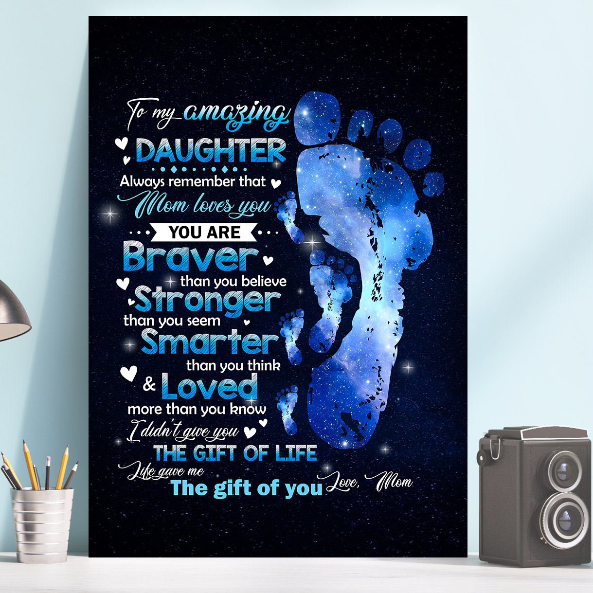 Let’s Shop To My Amazing Daughter Always Remember that Mom Loves You You Are Braver Framed Canvas – Unframed Poster!
