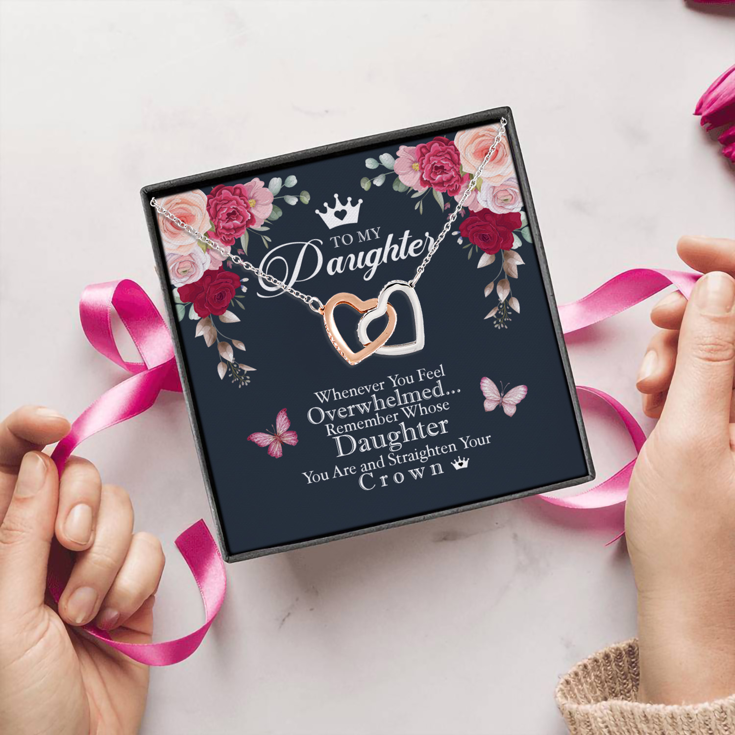 Let’s Shop Daughter Whenever You Feel Overwhelmed Remember Whose Straighten Your Crown Interlocking Hearts Necklace!