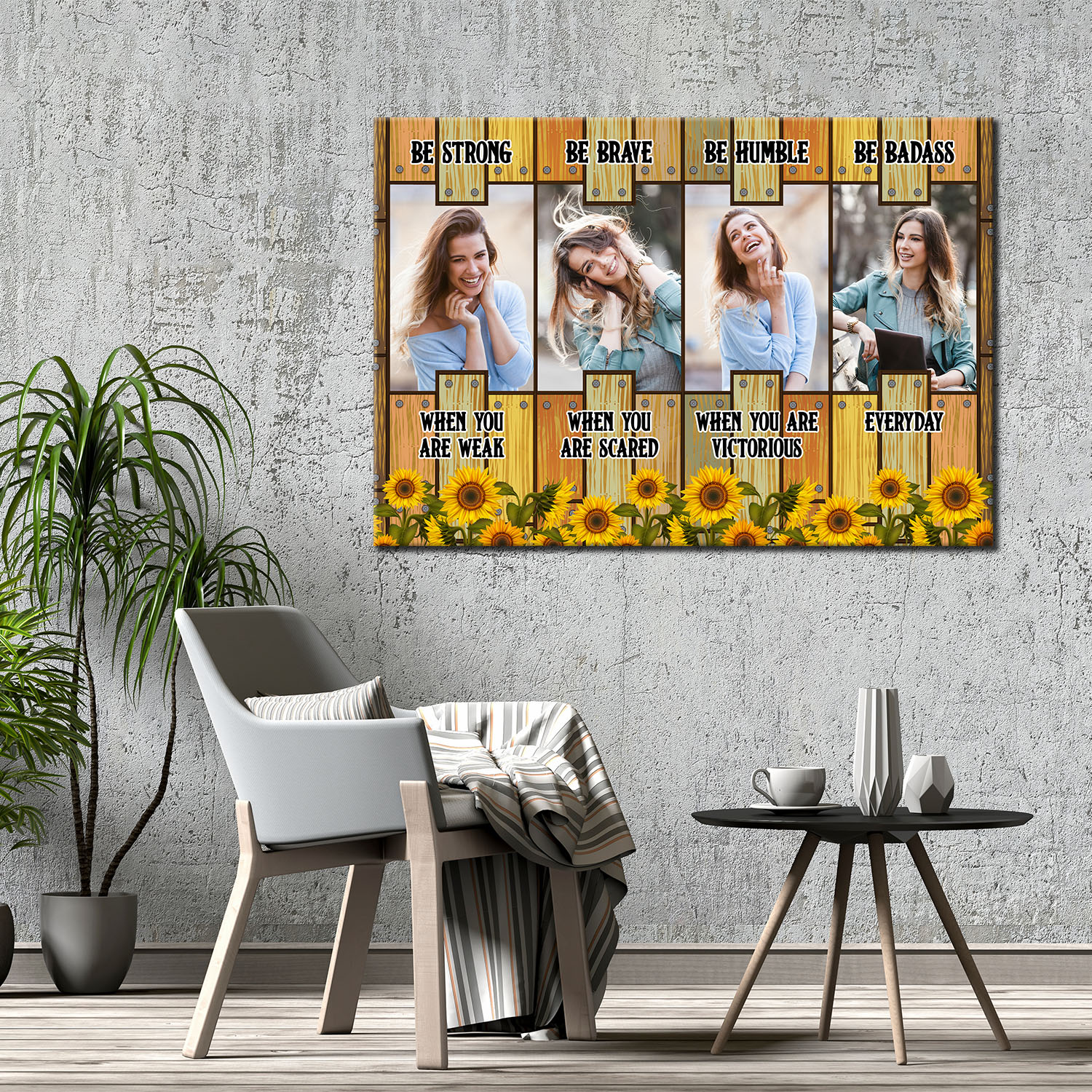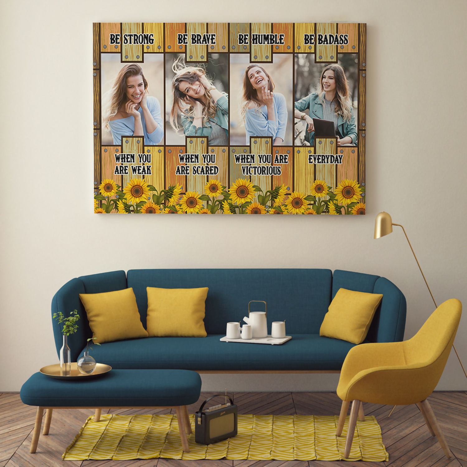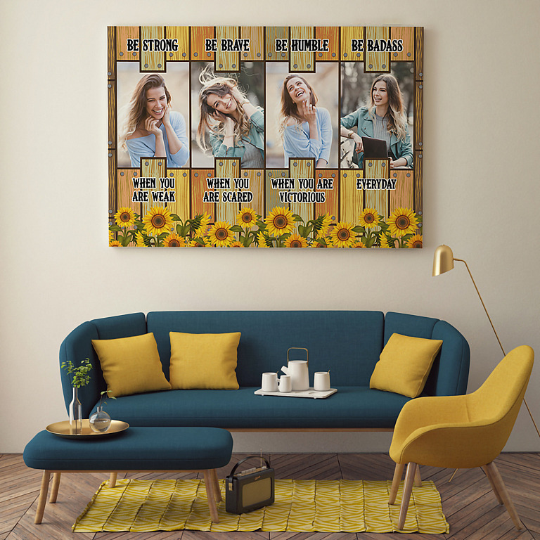 Let’s Shop Custom Photo Be Strong Be Brave Be Humble Be Badass Framed Canvas – Unframed Poster – Sunflower Personalized Photo!