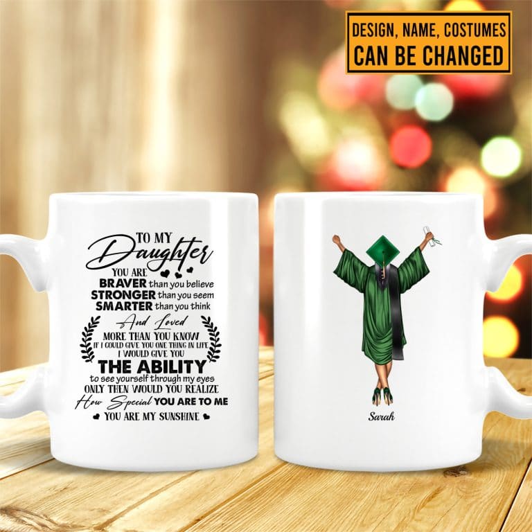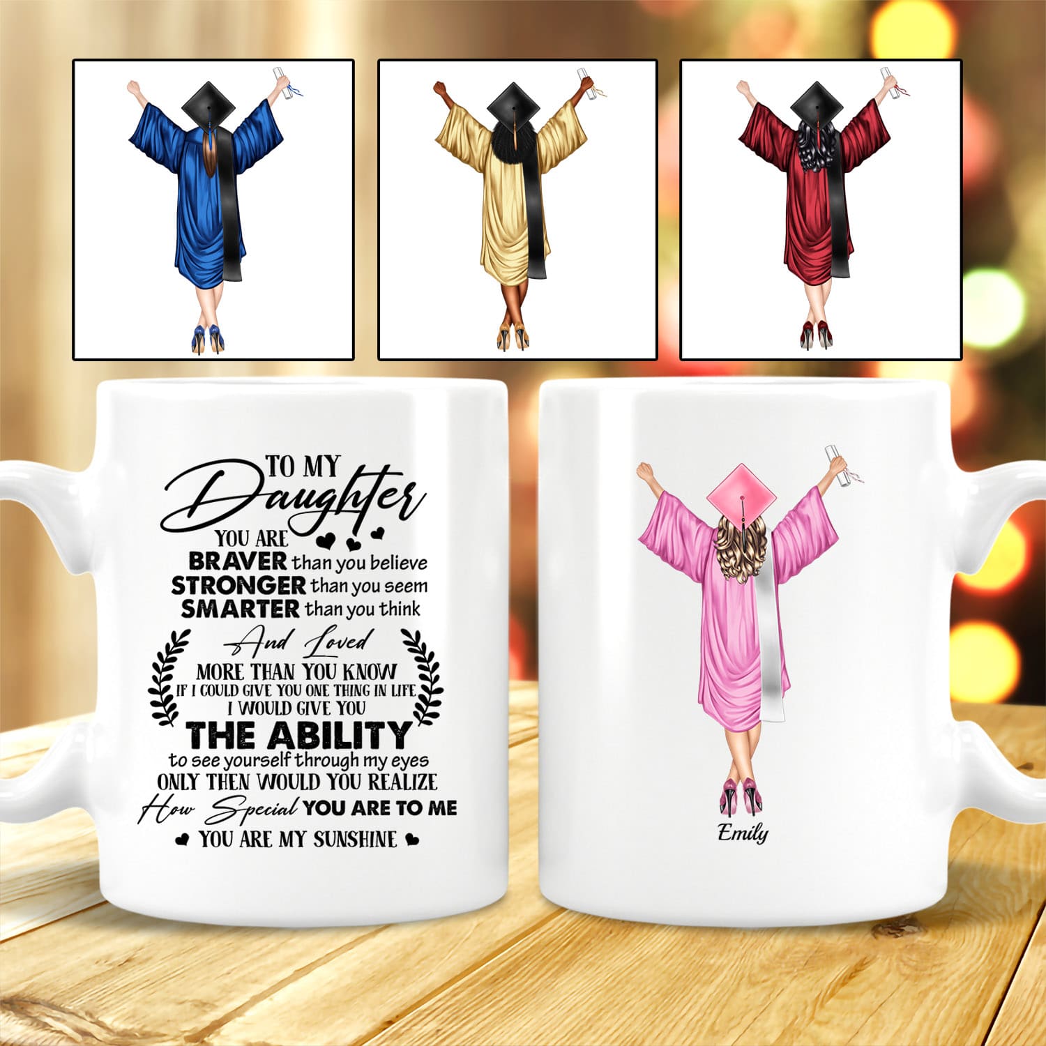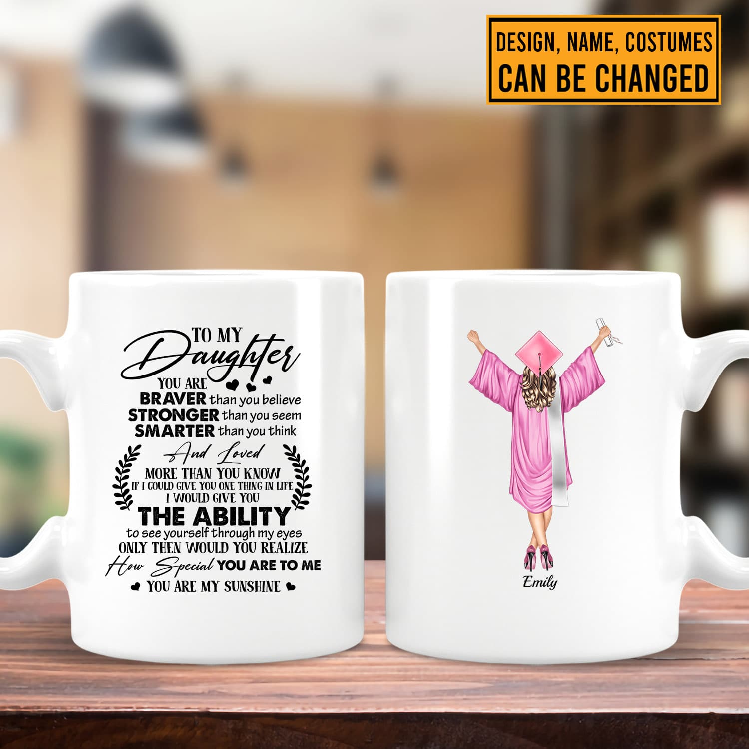 Let’s Shop To My Daughter You Are Braver Than You Believe Personalized Graduation Ceramic Two Sided Coffee Mug!