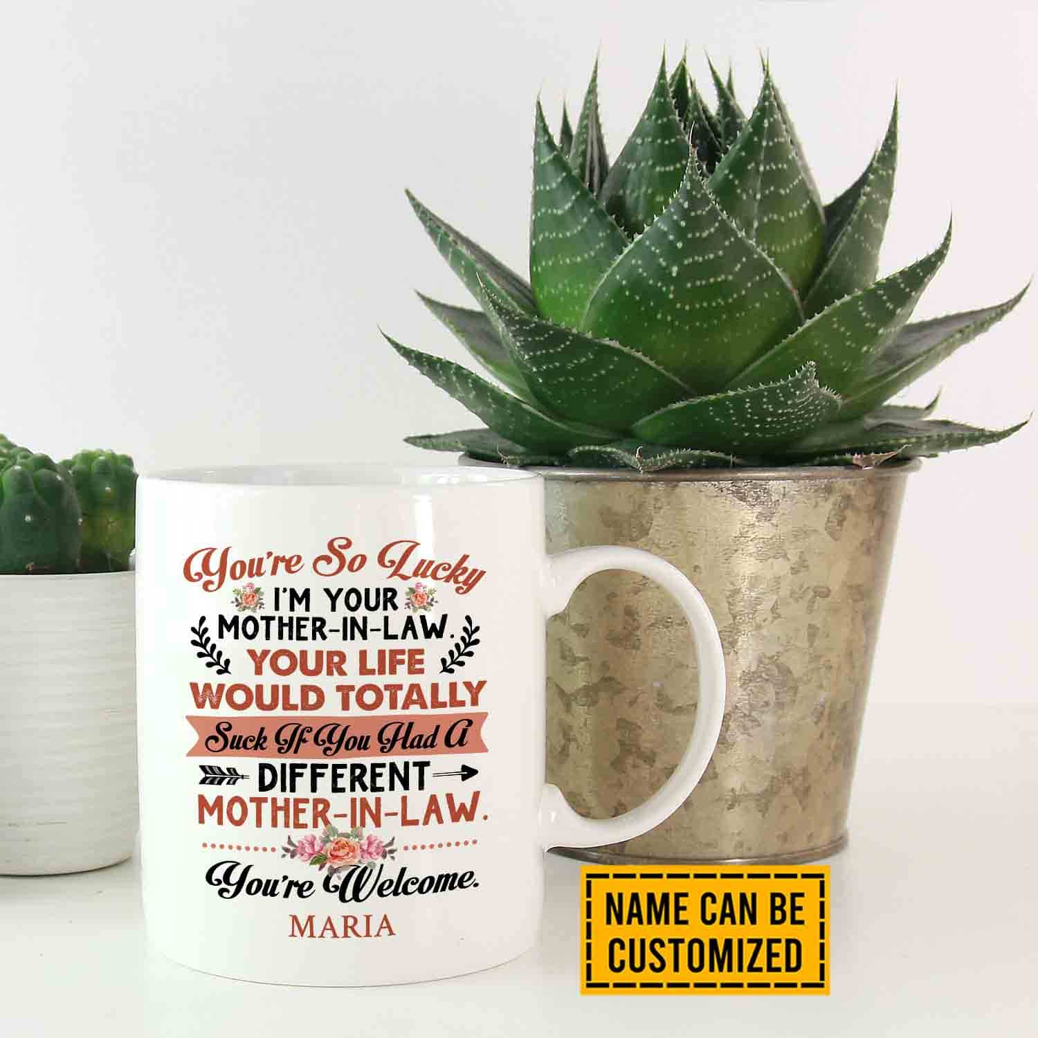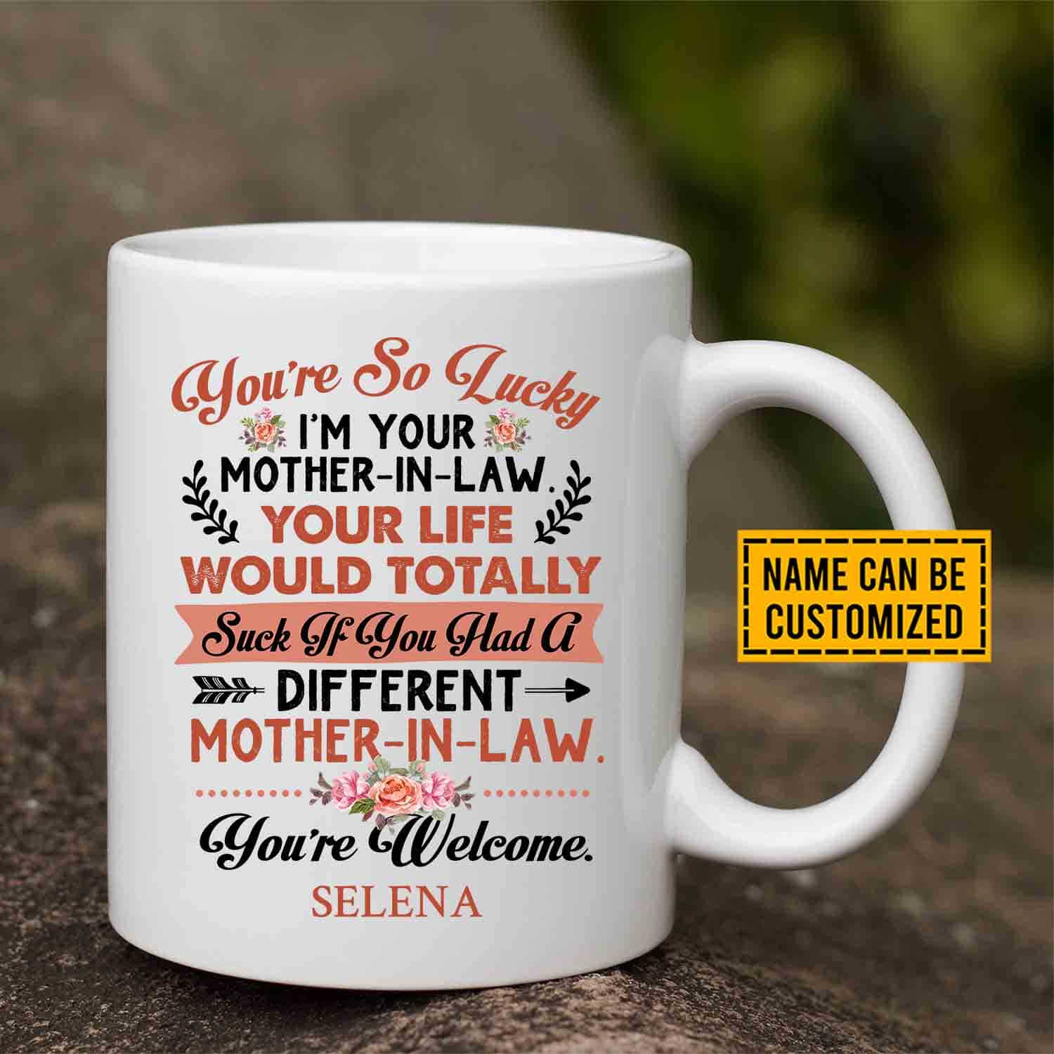 Let’s Shop Personalized You’re So Lucky I’m Your Mother In Law Your Life Would Totally Suck Funny Ceramic Coffee Mug!