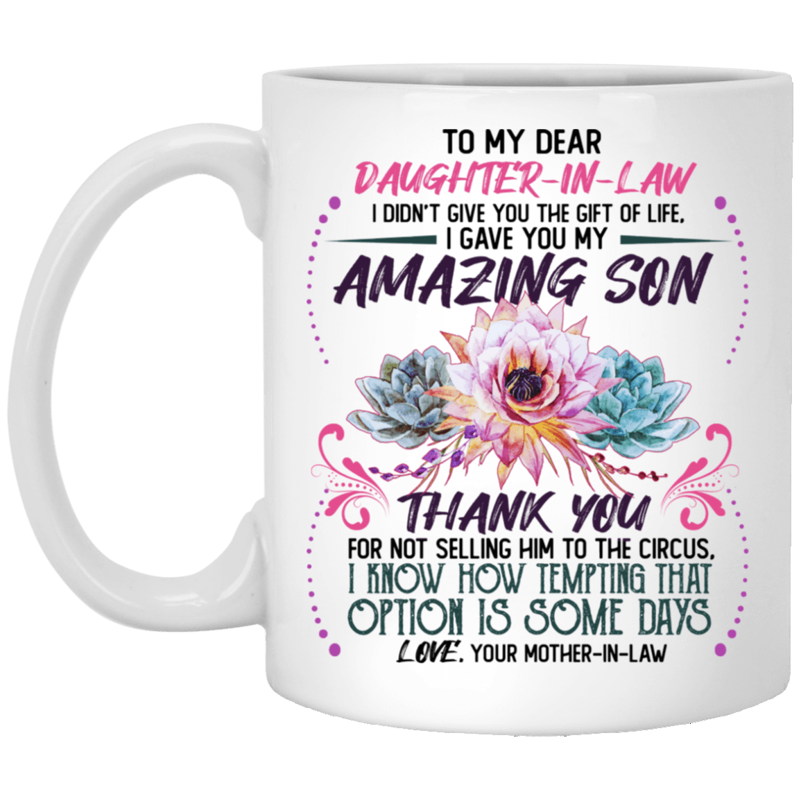 Are you spending too much time to find creative merchandise for you or suitable gifts for your friends, your mommy, your daddy, your children or someone you love? The struggle is over because we have various daughter in law mug, daughter in law mugs, daughter in law coffee mug, daughter in law coffee mug which will make perfect presents for your beloveds. In order to make your present stand out, we have created lots of unique and awesome customized designs.