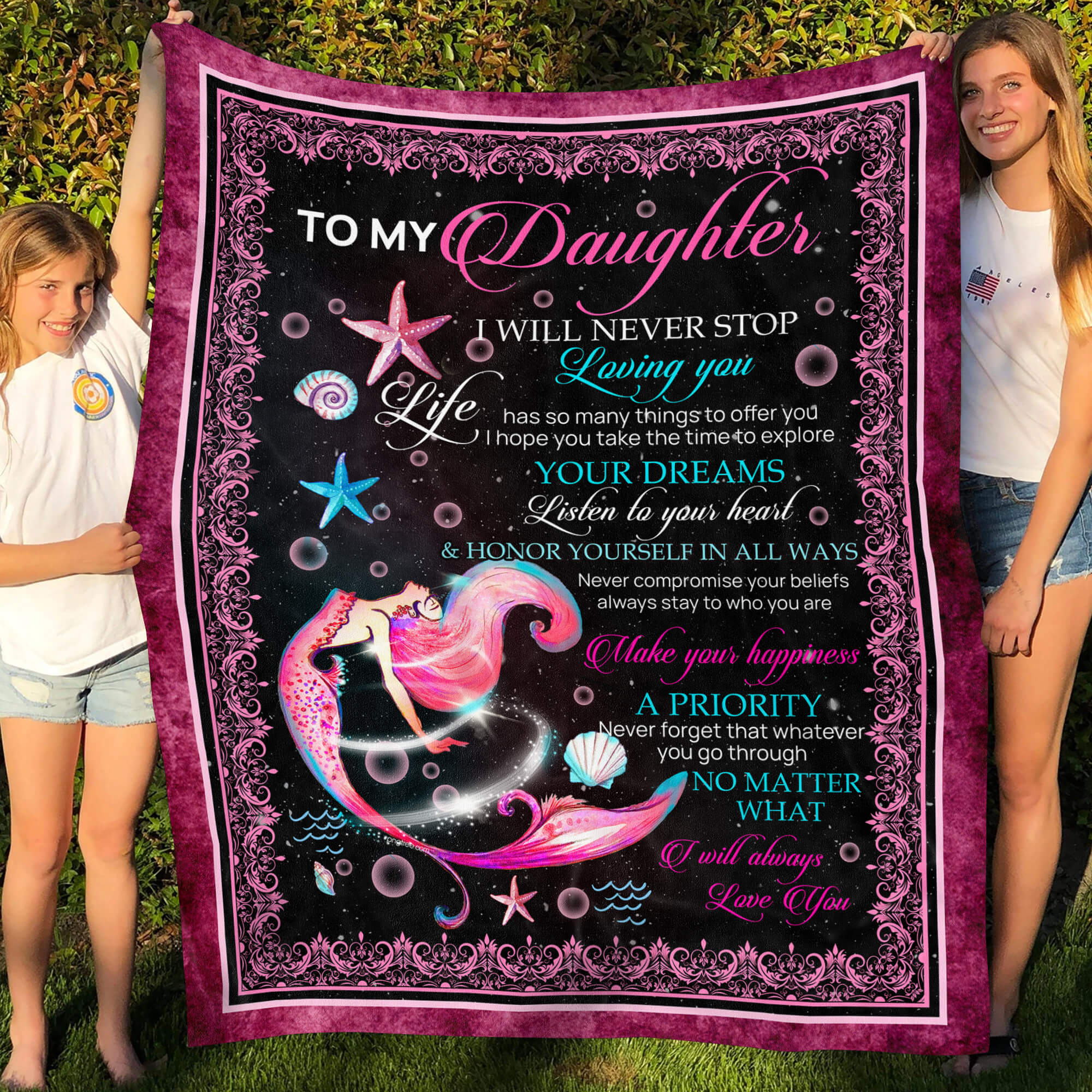 Let’s Shop To My Daughter I Will Never Stop Loving You Mermaid Fleece Blanket – Mink Blanket – Woven Blanket!