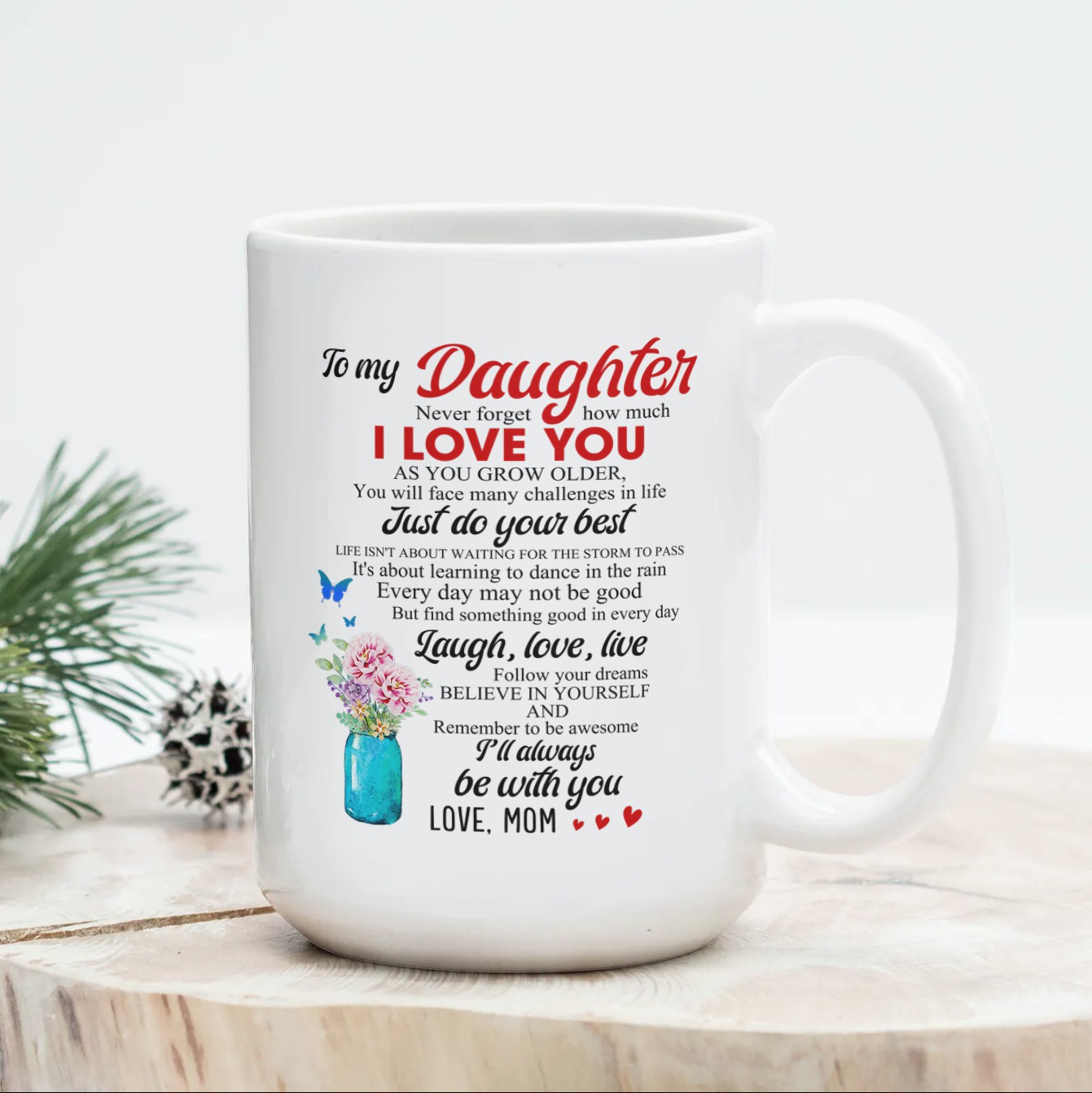 Are you spending too much time to find creative merchandise for you or suitable & special gifts for your mommy, your daddy, your son, your daughter, your children, your friends or someone you love? The struggle is over because we have various To My Daughter Never Forget How Much I Love You Mug, To My Daughter Mug, To My Daughter Never Forget How Much I Love You as You Grow Older Mug, To My Daughter Mug from Mom, To My Daughter Mug Love Mom, To My Daughter Coffee Mug from Mom, To My Daughter Coffee Mug, Daughter Mug, Gift for Daughter which will make perfect presents for your beloveds. In order to make your present stand out, we have created lots of unique and awesome customized photo gifts & personalized designs.