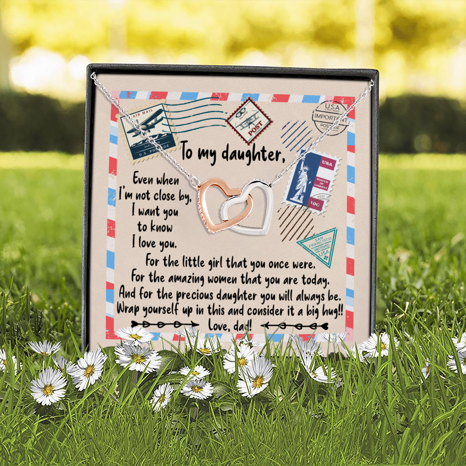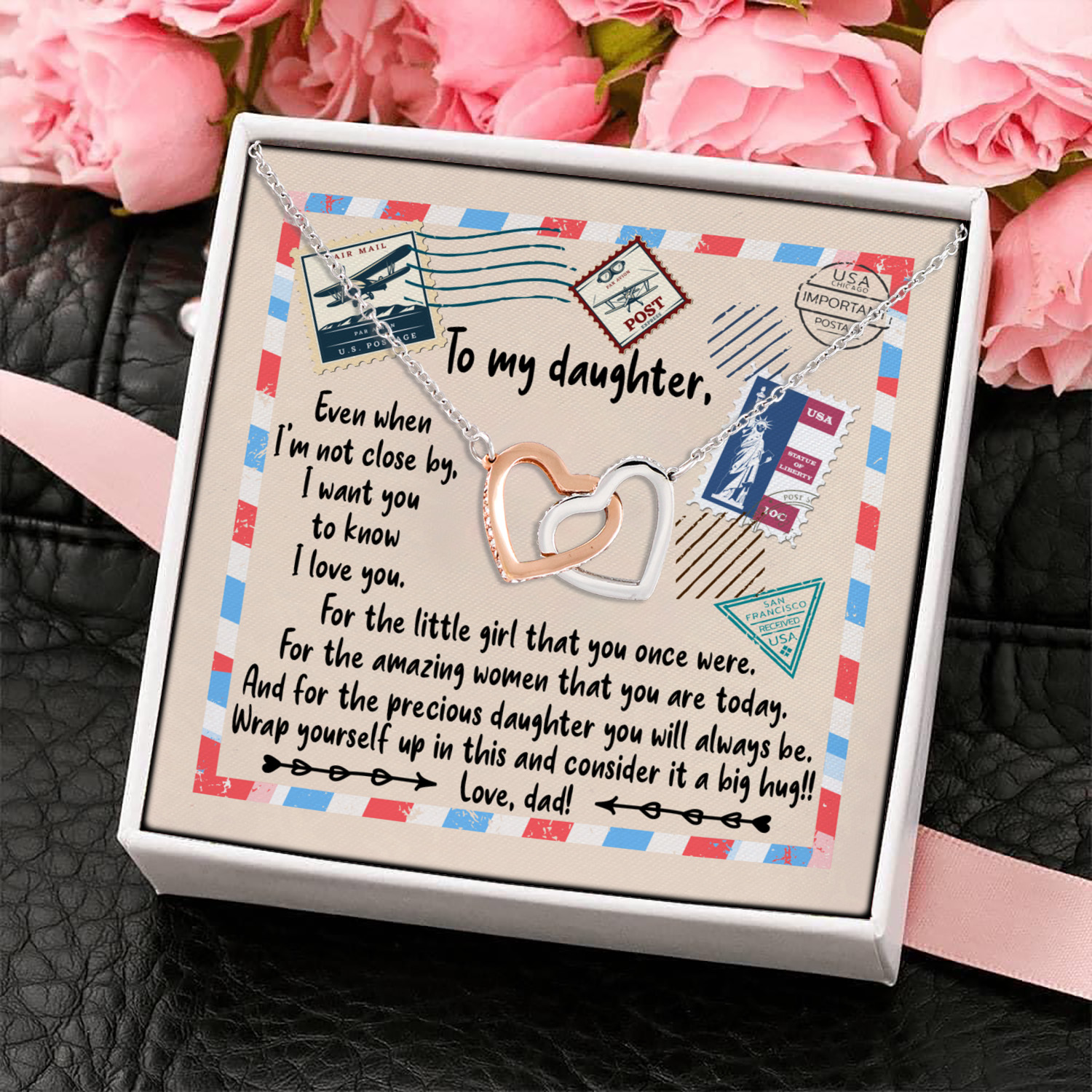 Let’s Shop Dad to My Daughter Even when I’m Not Close by I Want You to Know I Love U Interlocking Hearts Pendant Necklace!