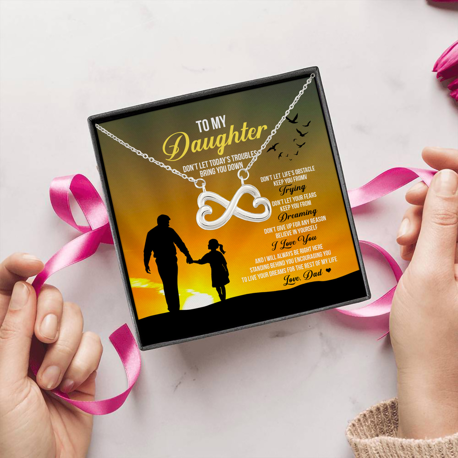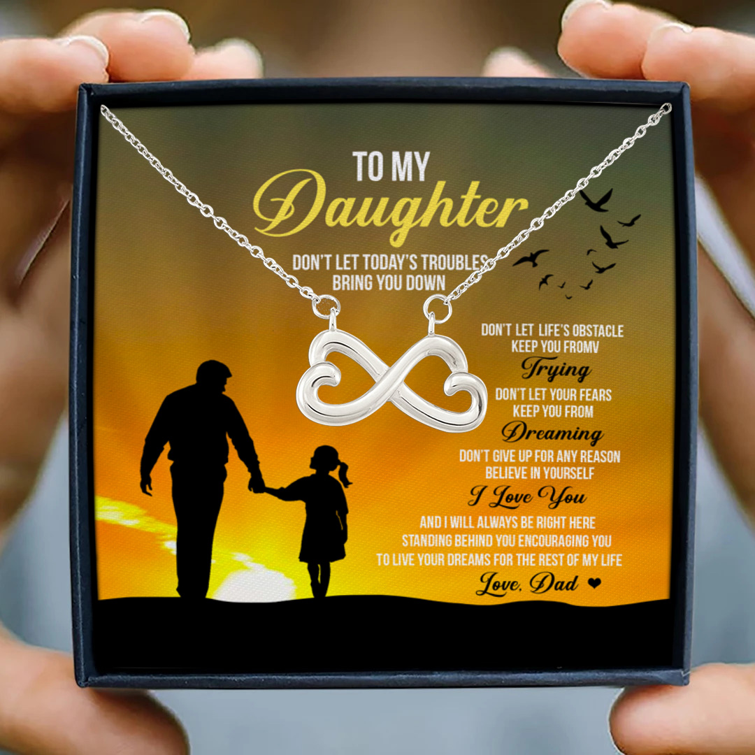 Let’s Shop From Dad To My Daughter Don’t Let Today Trouble Bring You Down Infinity Heart Pendant Necklace!