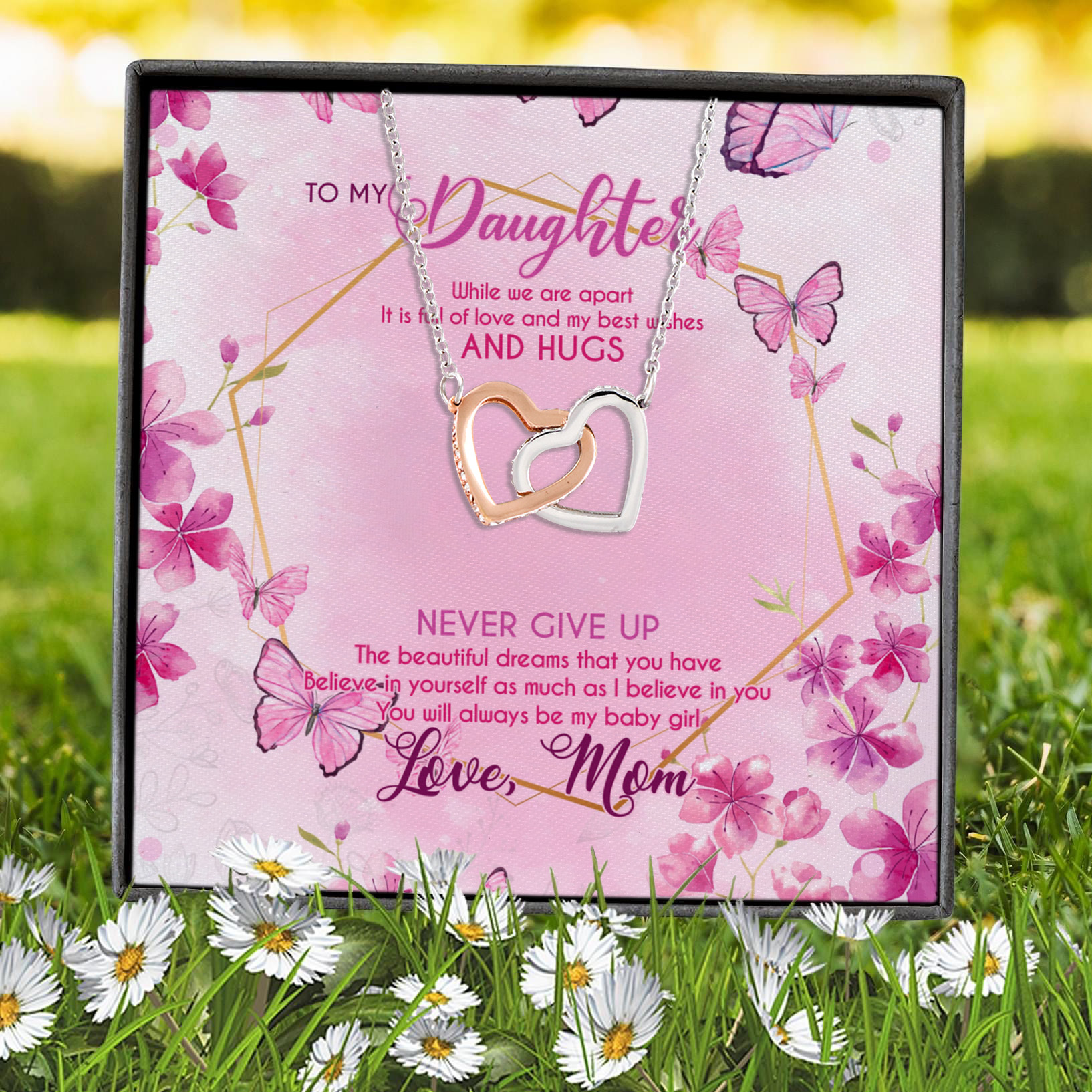 Let’s Shop To My Daughter While We Are Apart You Will Always Be My Baby Girl Love Mom Interlocking Hearts Pendant Necklace!