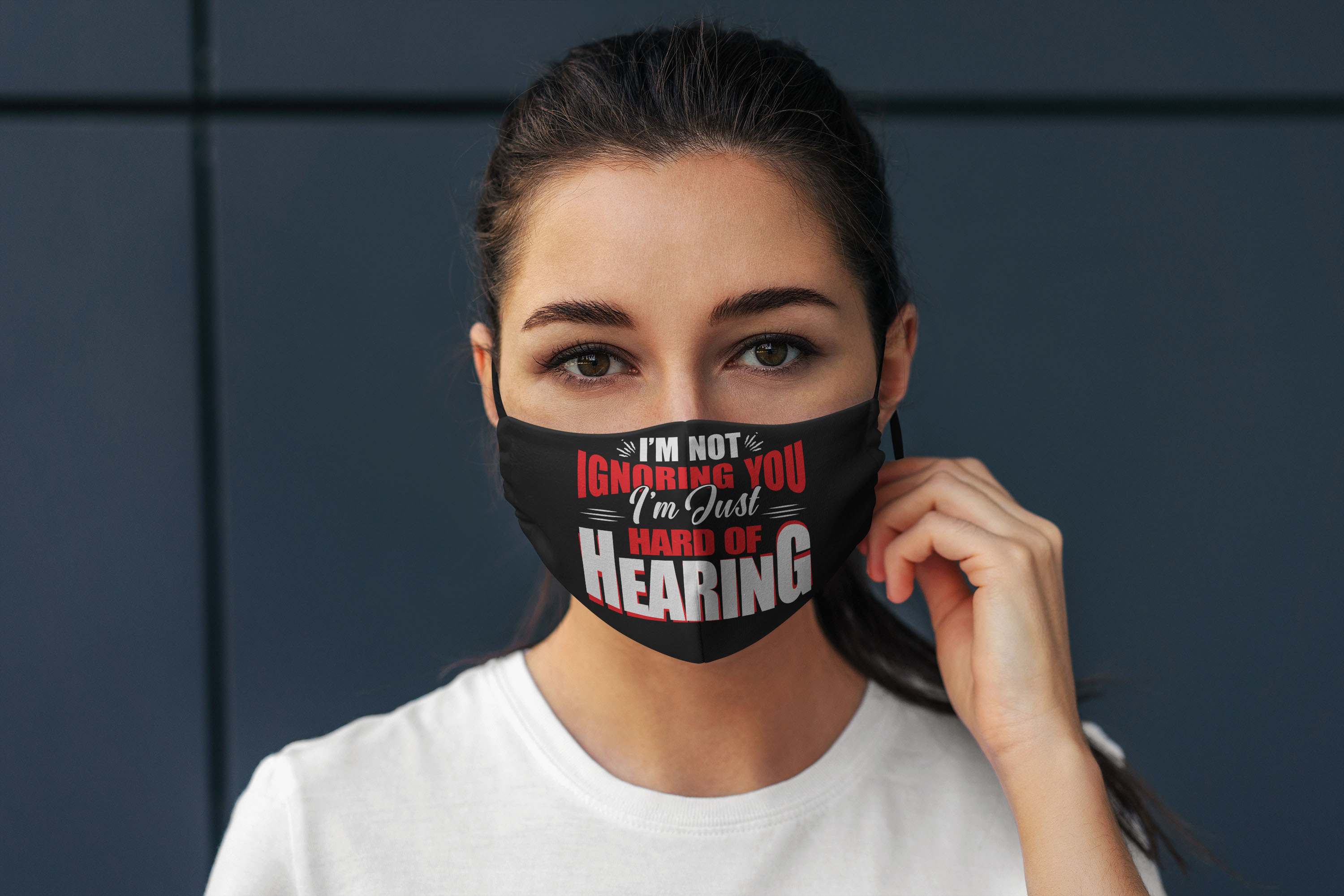 Shop I’m Not Ignoring You I’m Just Hard Of Hearing Deaf Awareness Washable Reusable Custom – Printed Cloth Face Mask.
