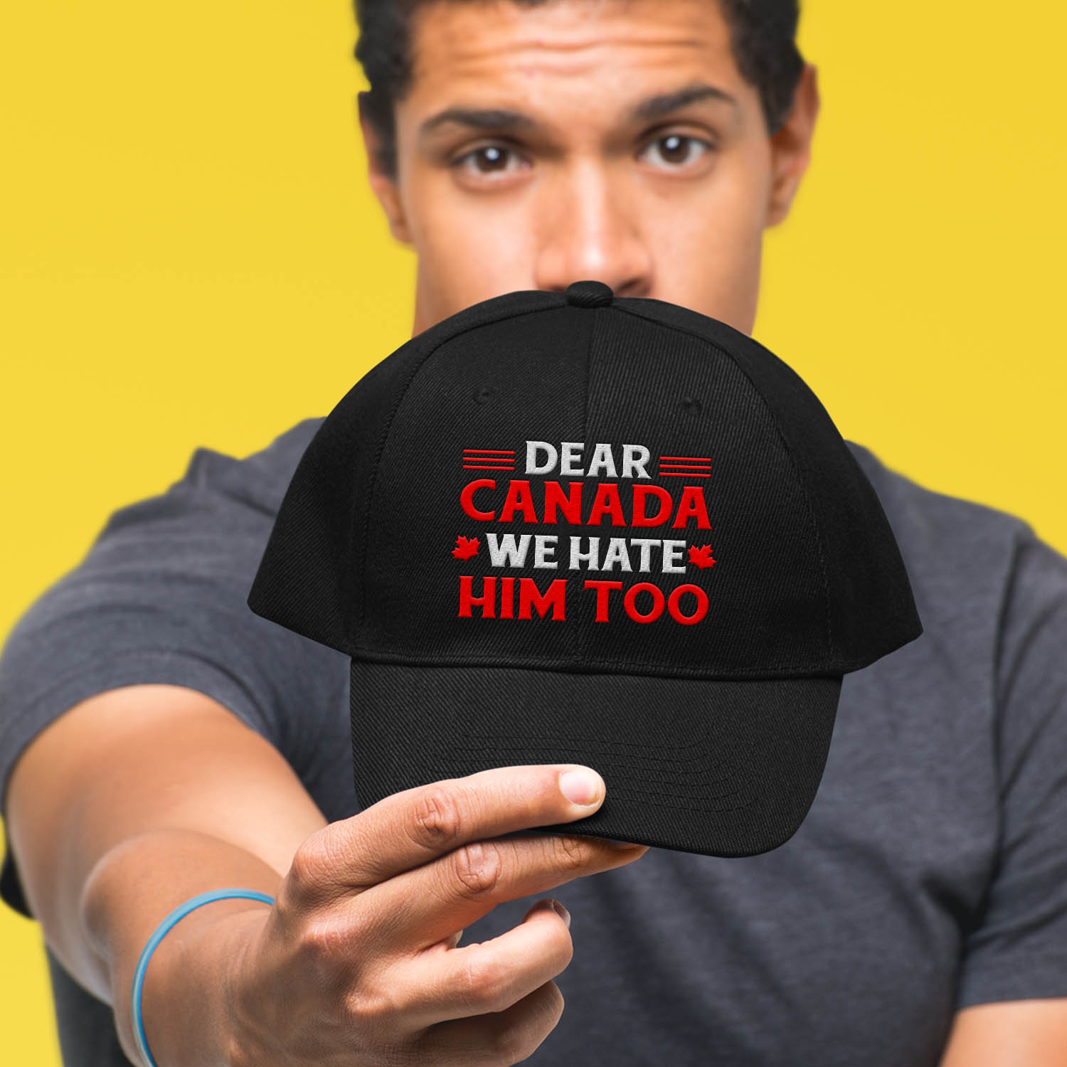 Are you spending too much time to find creative merchandise for you or suitable & special gifts for your mommy, your daddy, your son, your daughter, your children, your friends or someone you love? The struggle is over because we have various Dear Canada We Hate Him Too Cap, Dear Canada We Hate Him Too Ball Cap, Dear Canada We Hate Him Too Embroidered Cap, Dear Canada We Hate Him Too Baseball Cap, Dear Canada We Hate Him Too Hat, Dear Canada We Hate Him Too Shirt, Canada Protest Political Hat which will make perfect presents for your beloveds. In order to make your present stand out, we have created lots of unique and awesome customized photo gifts & personalized designs.