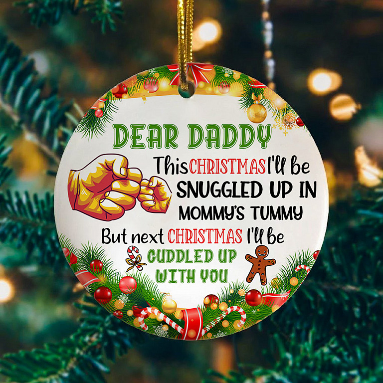 Let’s Shop Dear Daddy This Christmas I’ll Be Snuggled Up In Mommy’s Tummy Christmas Ornament-Fun New Dad To Be Keepsake!