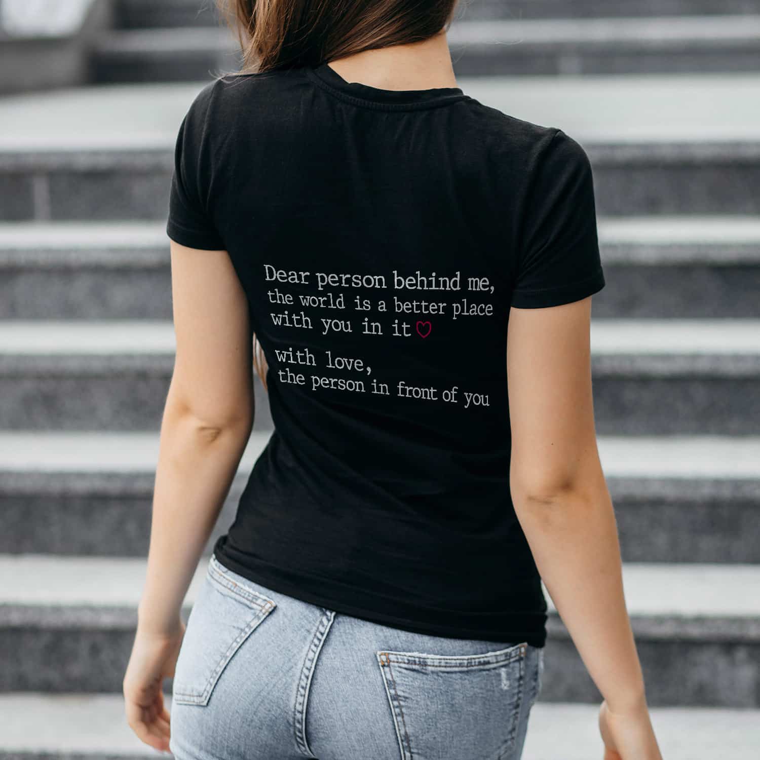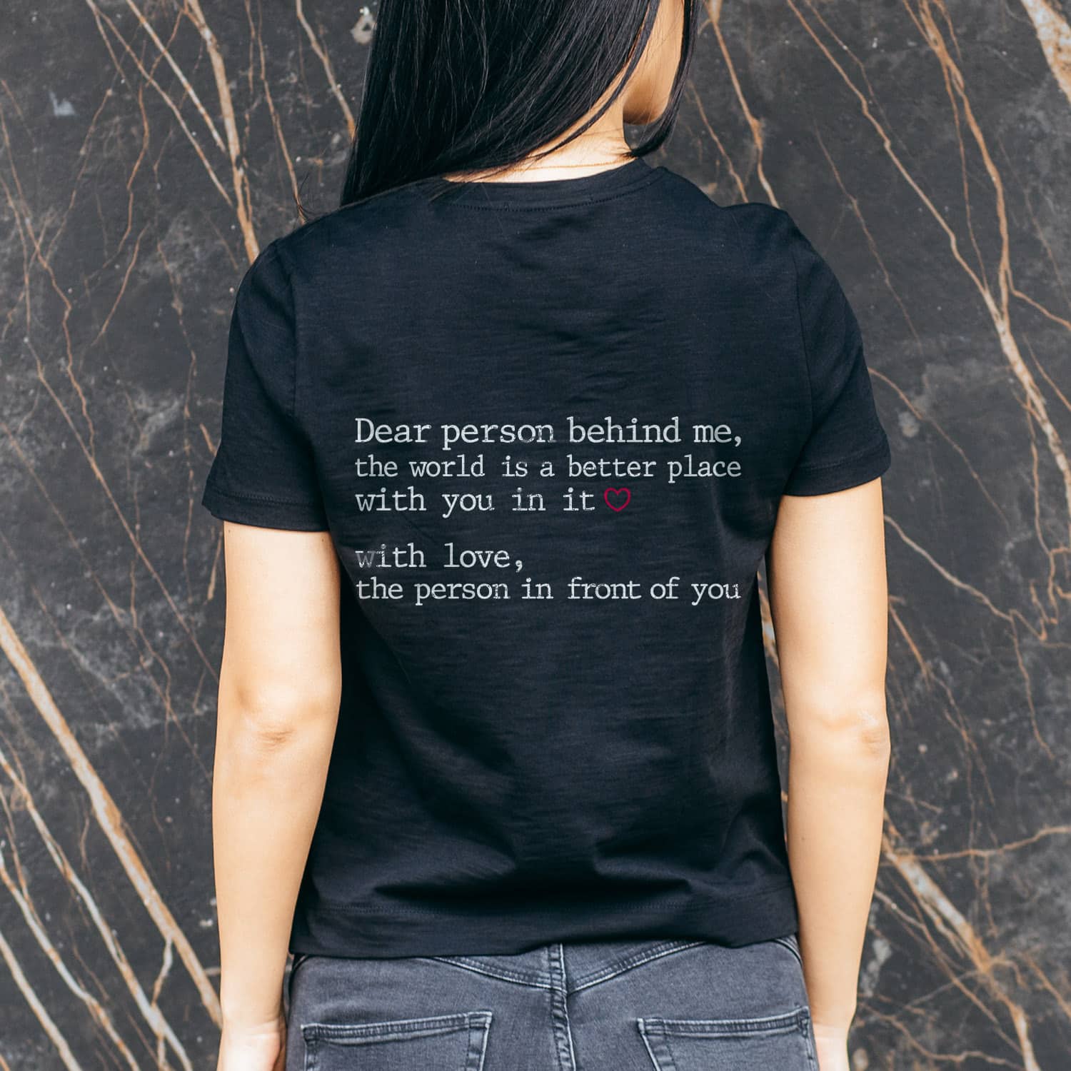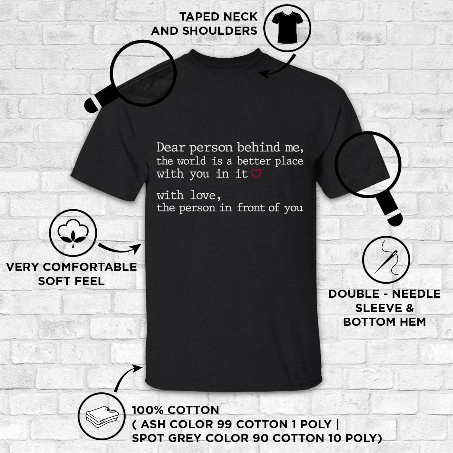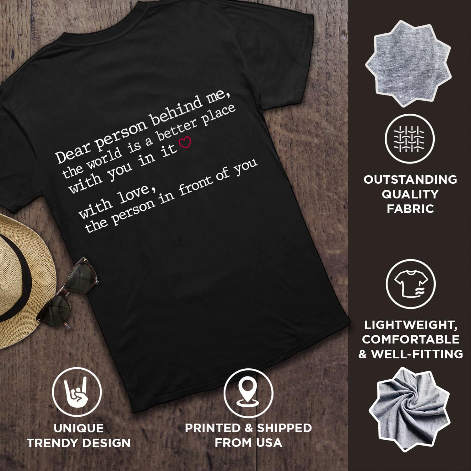 Are you spending too much time to find creative merchandise for you or suitable & special gifts for your mommy, your daddy, your son, your daughter, your children, your friends or someone you love? The struggle is over because we have various type of products such as Dear Person Behind Me The World Is The Better Place Print On Back T-Shirt, Dear Person Behind Me Print On Back Shirt, Dear Person Behind Me Print On Back T Shirt, Dear Person Behind Me Back Shirt, Travel T Shirt which will make perfect presents for your beloveds. In order to make your present stand out, we have created lots of unique and awesome customized photo gifts & personalized designs.