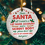 Shop Dear Santa All I Want For-Christmas Is a Fat Bank Account Christmas Circle Porcelain Ceramic Ornament Keepsake.