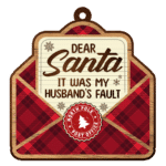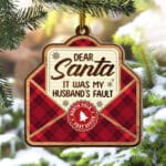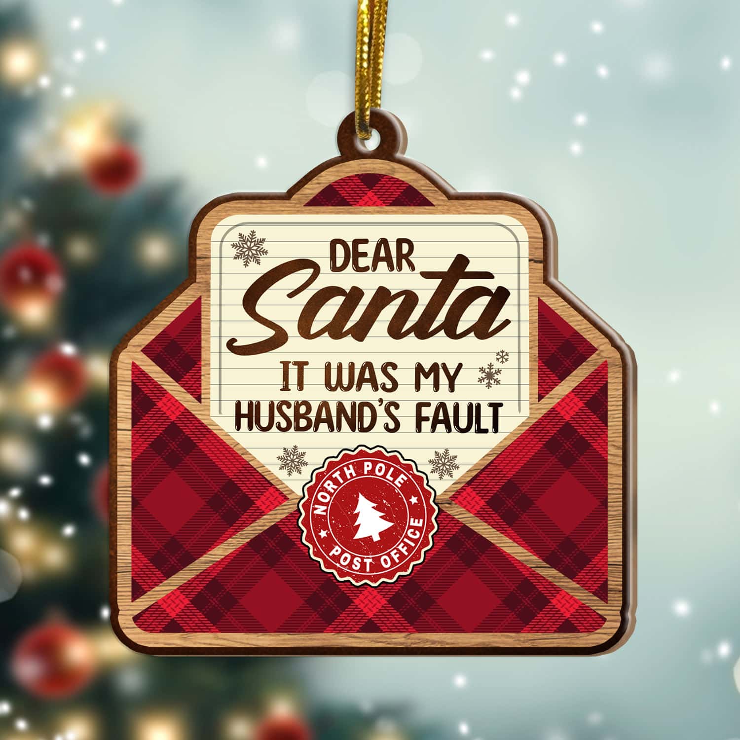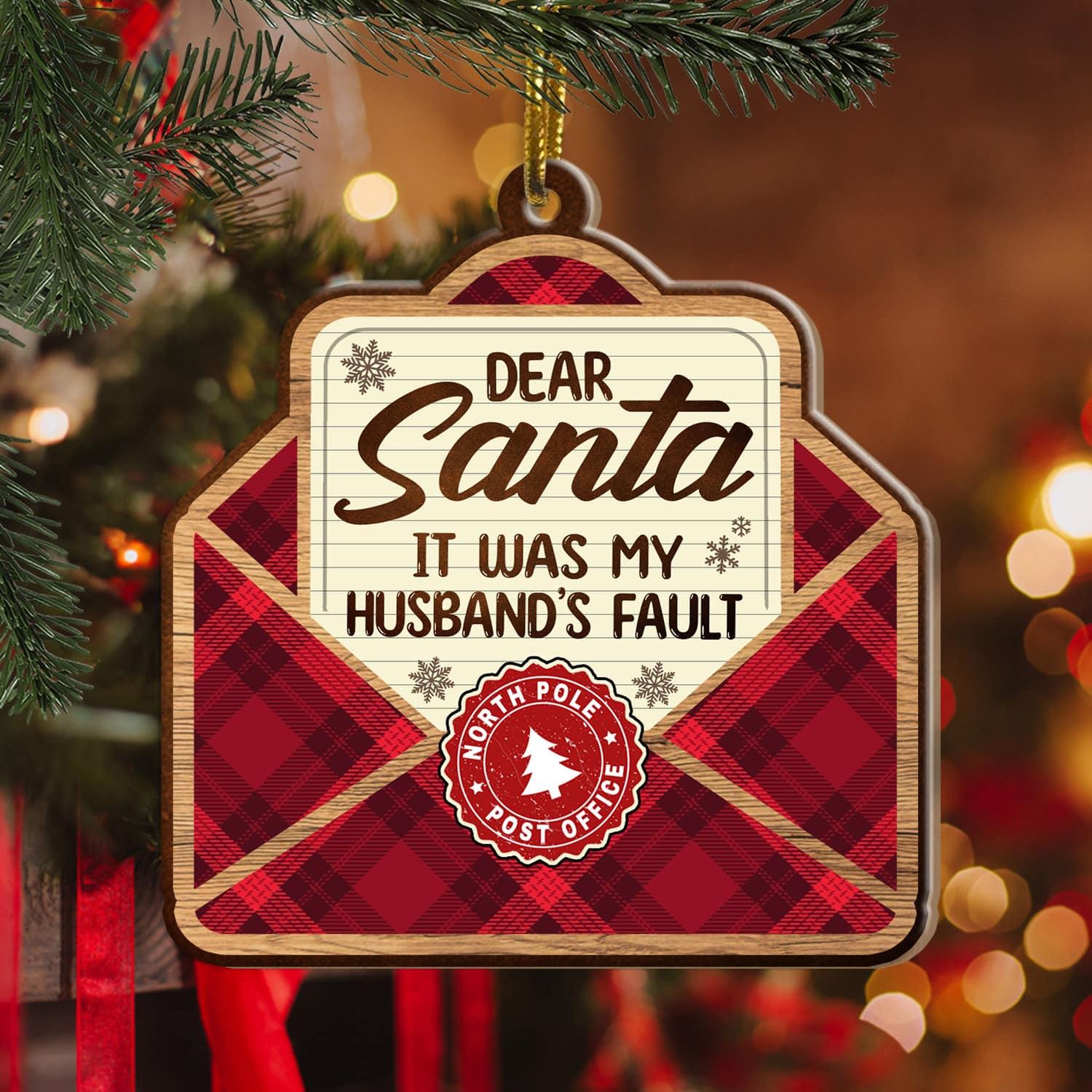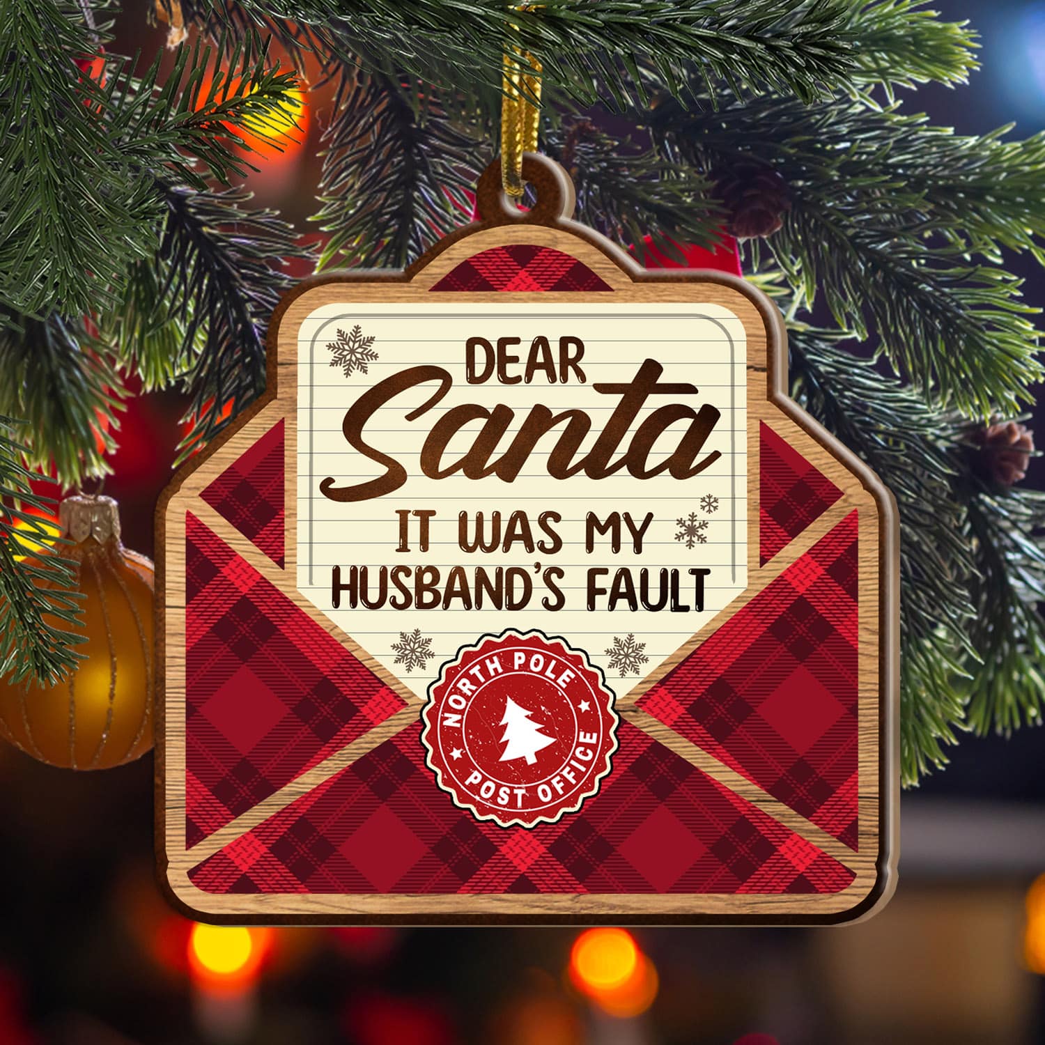 Let’s Shop Dear Santa It Was My Husband’s Fault Custom Shaped Wooden Christmas Ornament Keepsake!