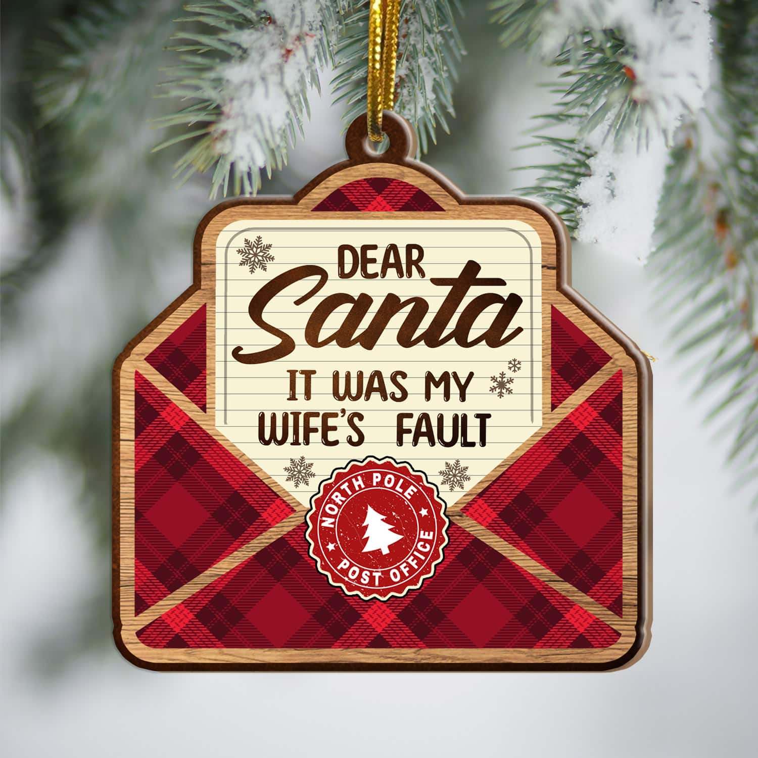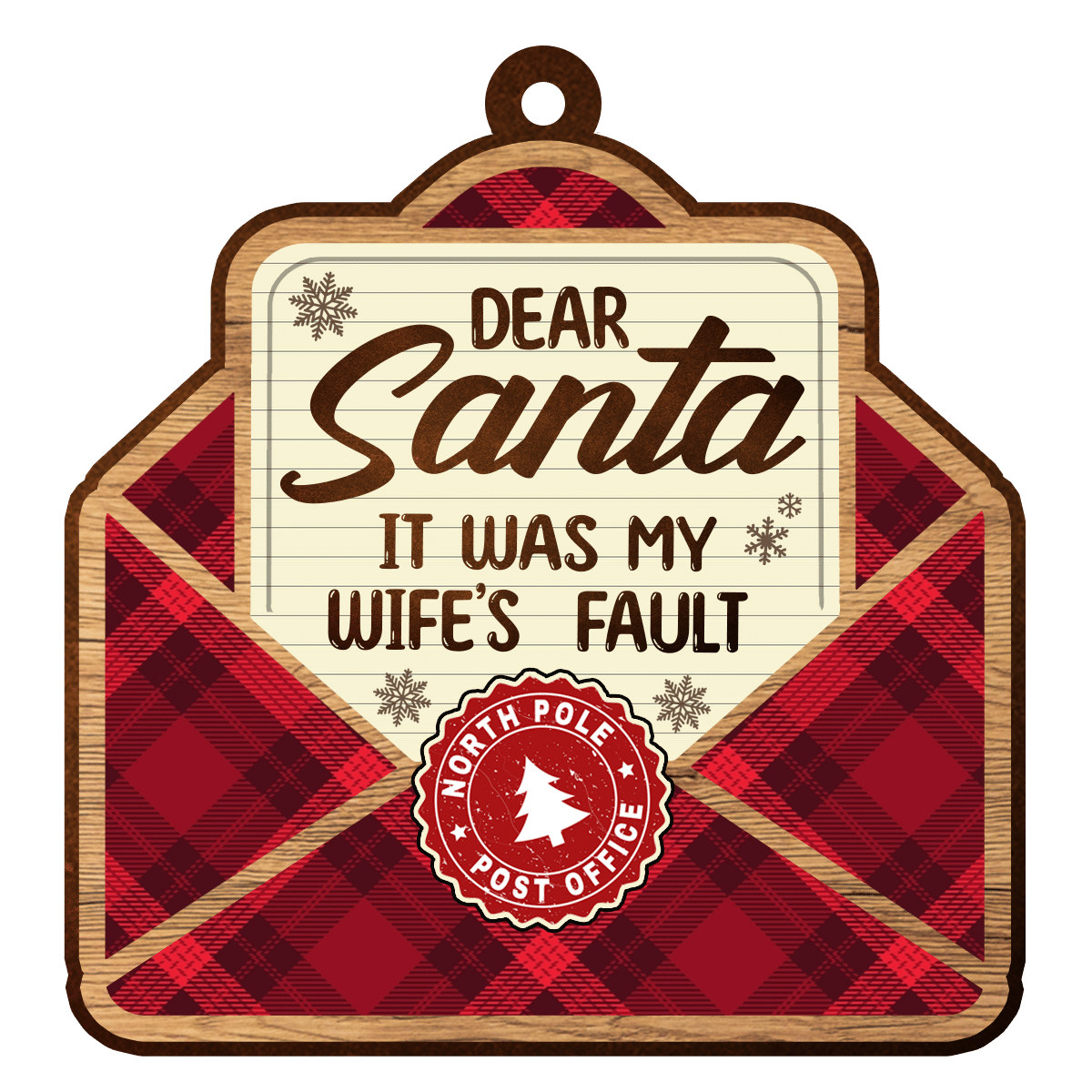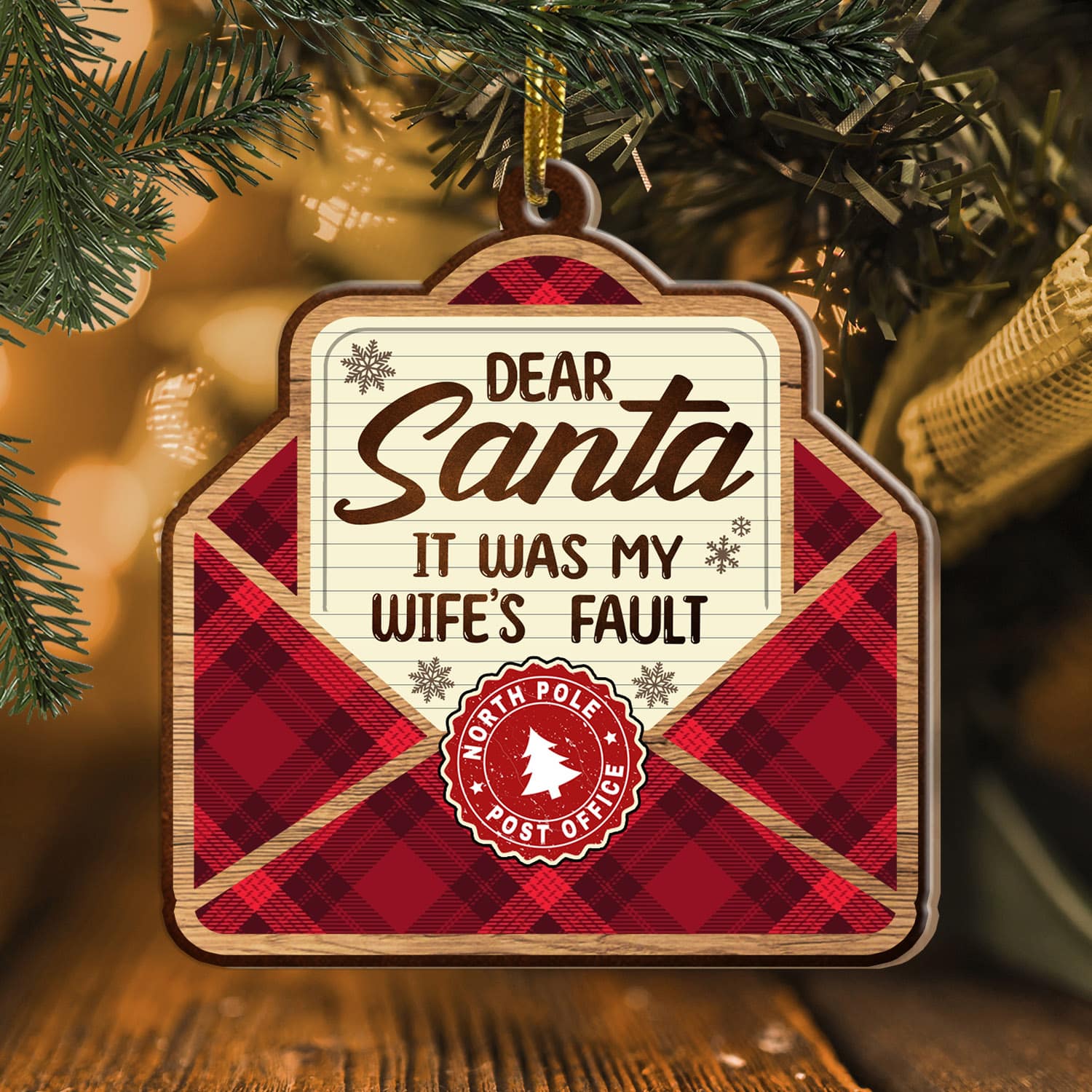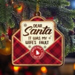 Let’s Shop Dear Santa It Was My Wife’s Fault Custom Shaped Wooden Christmas Ornament Keepsake!