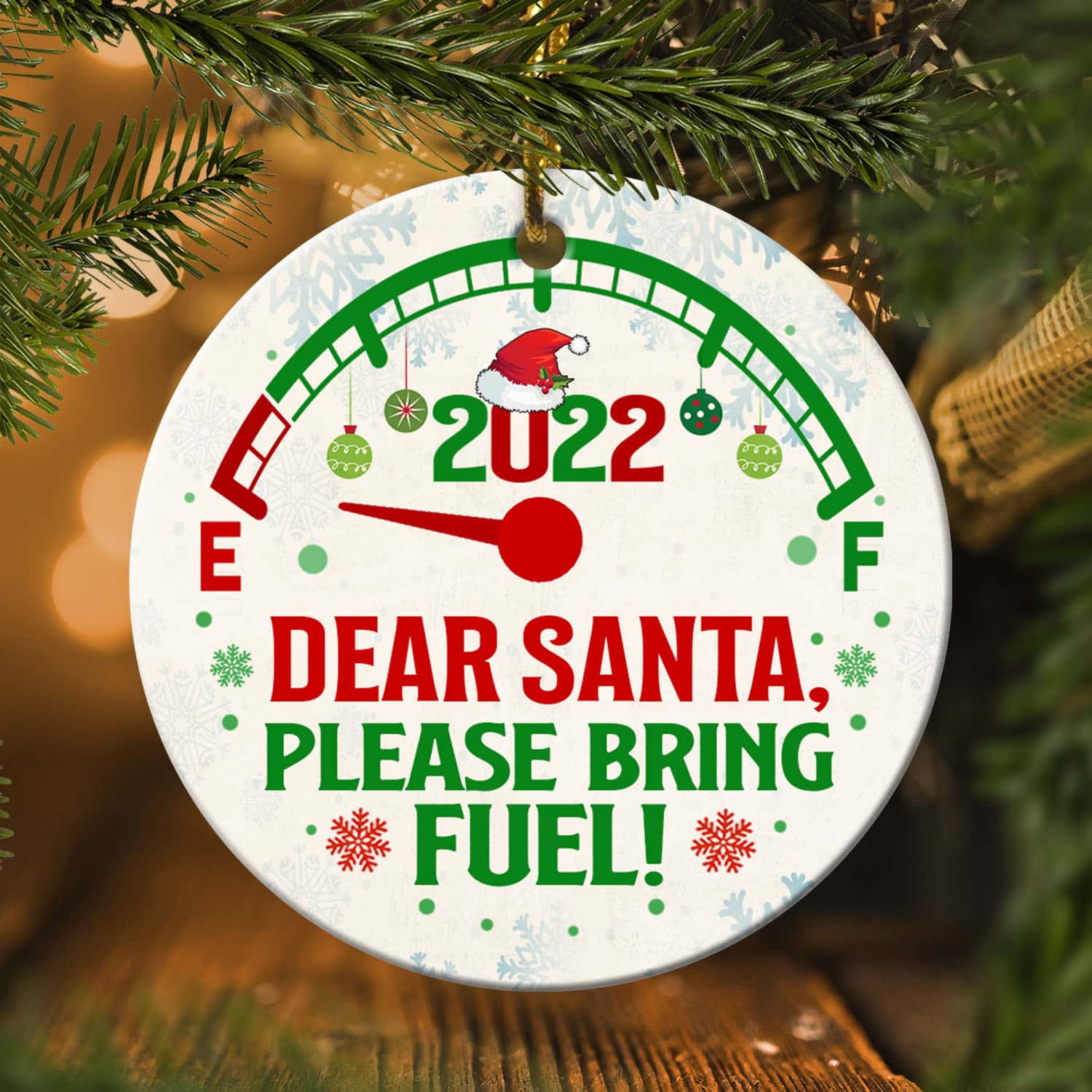Let’s Shop Dear Santa Please Bring Fuel Funny 2022 Gas Christmas Circle Ornament Keepsake – Funny Santa Wish For Christmas!