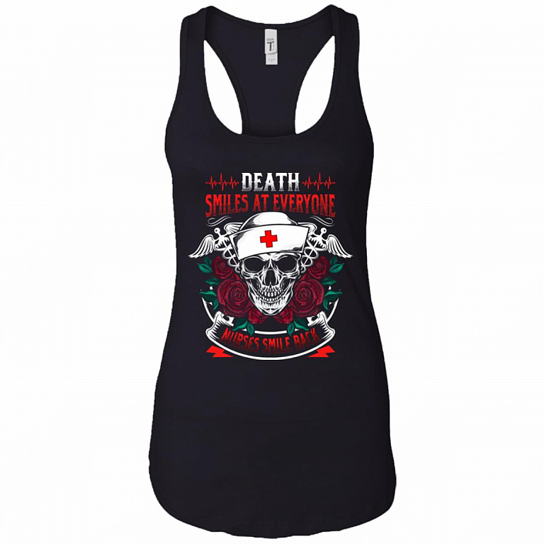 Death Smiles At Everyone Nurses Smile Back Cotton Tank Top Tee – Ladies Racerback Tank